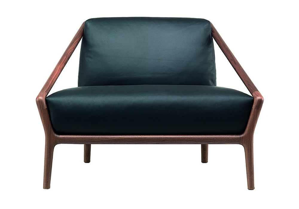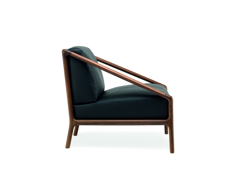 Rive Droite von Christophe Pillet für Ceccotti Collezioni entworfen, ist ein Sessel mit einer Struktur aus massivem amerikanischem Nussbaum, Sitz und Rückenlehne, gepolstert und mit Stoff, Leder oder Naturleder bezogen.