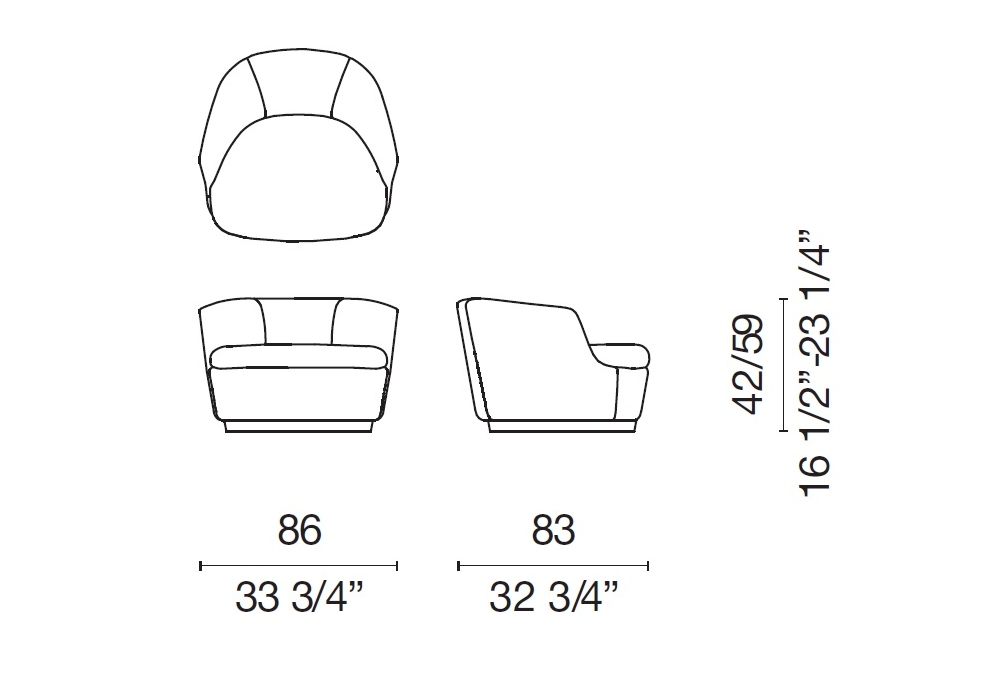 Orla von Jasper Morrison Cappellini entworfen, ist ein Sessel aus Polyurethanschaum unterschiedlicher Dichte und Faserpolsterung, Gestell aus Holzkonglomeratplatte mittlerer Dichte und fester Bezug aus Stoff oder Leder. Erhältlich mit festem oder drehbarem Fuß.