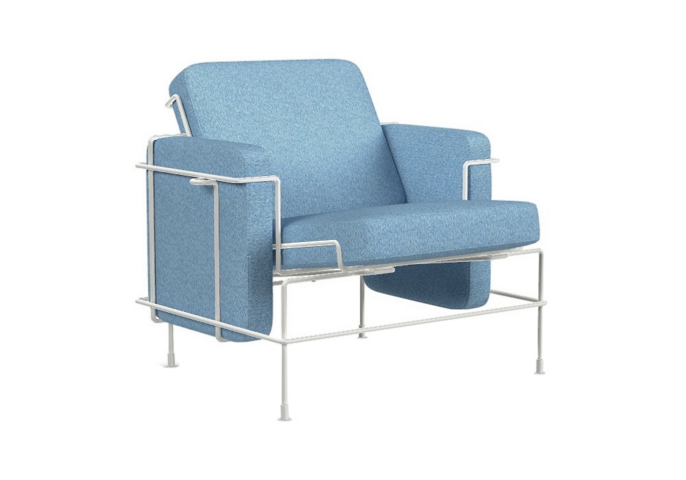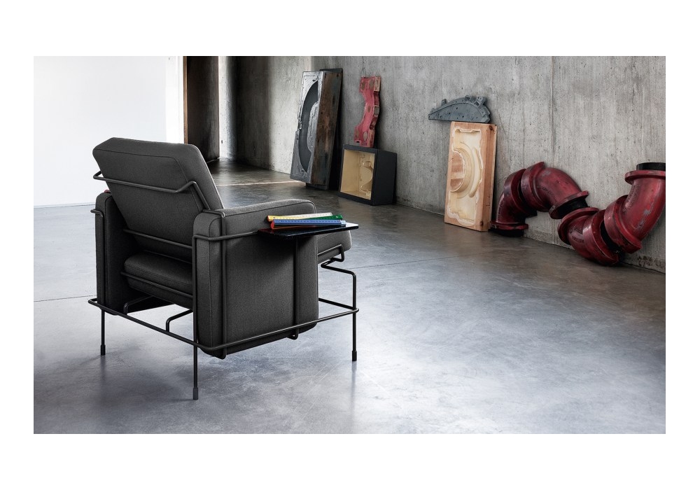Traffic_2 von Konstantin Grcic für Magis entworfen, ist ein Sessel mit Gestell aus lackiertem Stahl. Kissen aus feuerhemmendem Polyurethanschaum, bezogen mit Leder oder abziehbarem Stoff. Acrylsteinplatte erhältlich (optional).