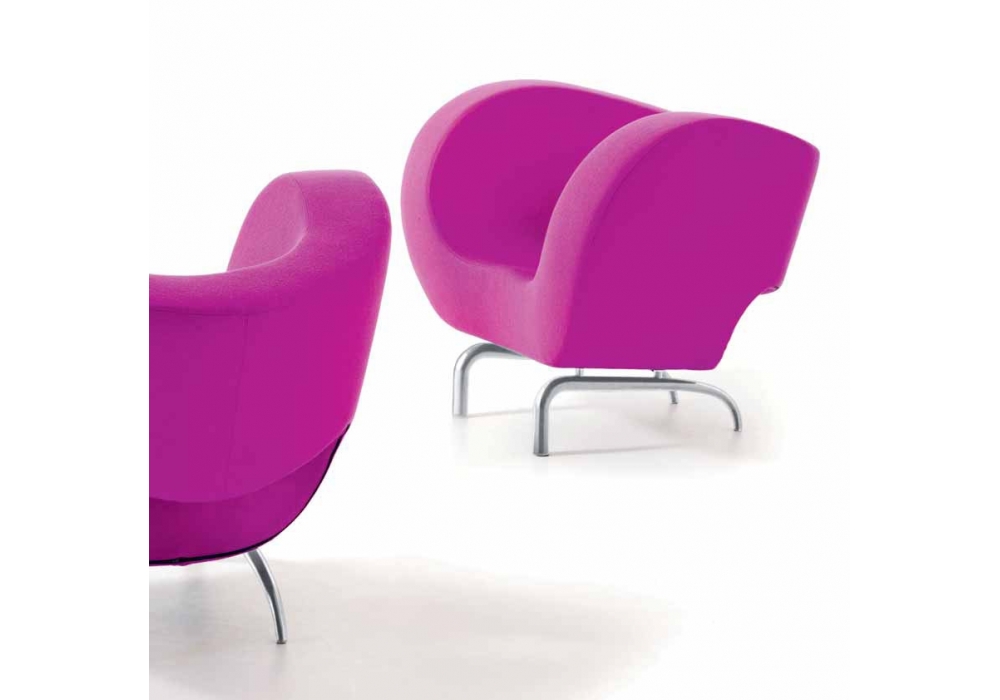 Victoria and Albert von Ron Arad für Moroso entworfen, ist ein Sessel mit Sitz aus kaltgeschäumtem Schaumstoff mit innerer Stahlstruktur. Polsterung in verschiedenen Stoffen oder Ledern und Füße aus lackiertem Stahlrohr.