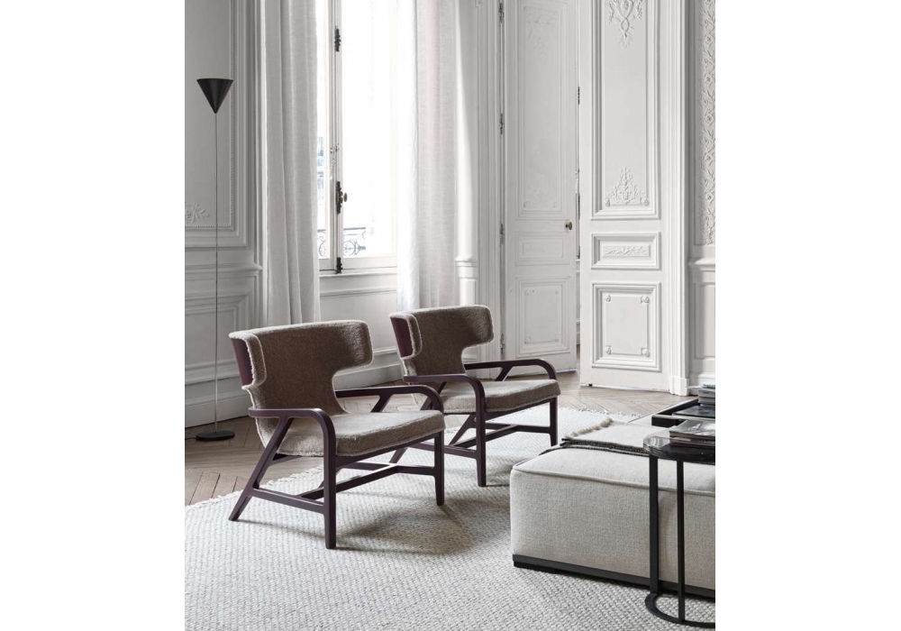 Fulgens von Antonio Citterio für Maxalto entworfen, ist ein Sessel mit einer Struktur aus massiver Eiche oder in Schellackoptik lackiert. Stoff- oder Lederpolsterung mit einer starren Polyurethanschale in verschiedenen Lackierungen in Schellackoptik.