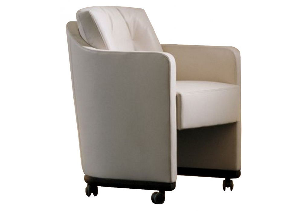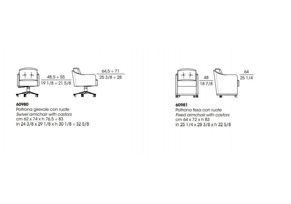 Musa von Antonello Mosca für Giorgetti entworfen, ist ein Sessel mit drehbaren Rädern und sowohl in fester als auch in drehbarer Ausführung erhältlich. Die Polsterung aus Stoff oder Leder ist nicht abnehmbar. Er ist mit einer Gasfeder zur Höhenverstellung ausgestattet und hat ein Sitzpolster aus Profilstahl, eingebettet in kaltgeschäumten Polyurethanschaum, mit Faser überzogen.