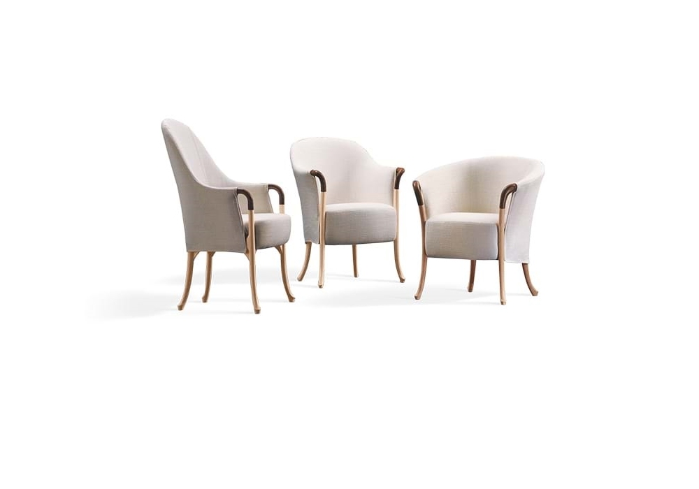 Progetti von Centro Ricerche Giorgetti entworfen, ist ein Sessel mit einer massiven Buchenstruktur mit polierten oder lackierten Beinen. Die Armlehnen sind aus poliertem Pau Ferro. Die Polsterung des Sitzes und der Rückenlehne besteht aus Polyurethanschaum, die Polsterung ist in Stoff oder Leder in verschiedenen Ausführungen erhältlich. Der Sessel ist in verschiedenen Modellen und Größen erhältlich.