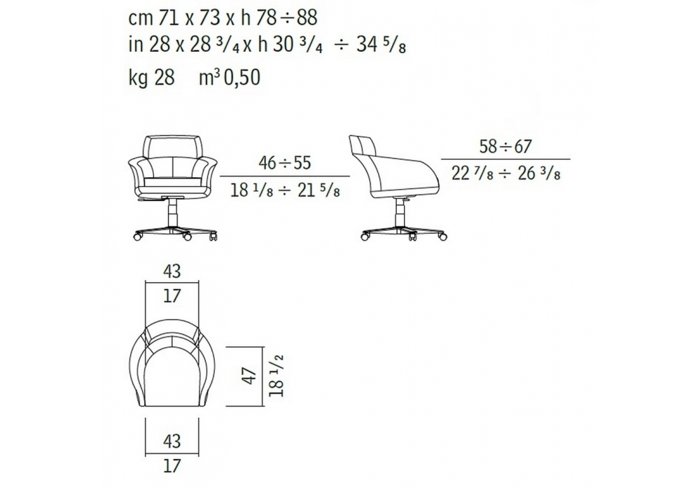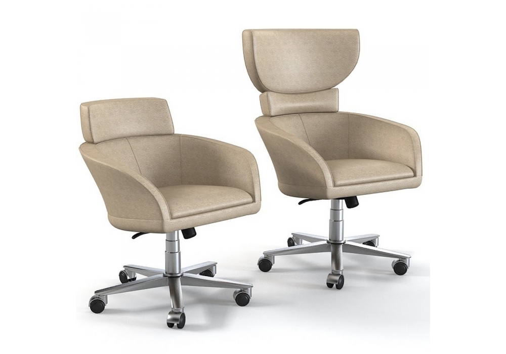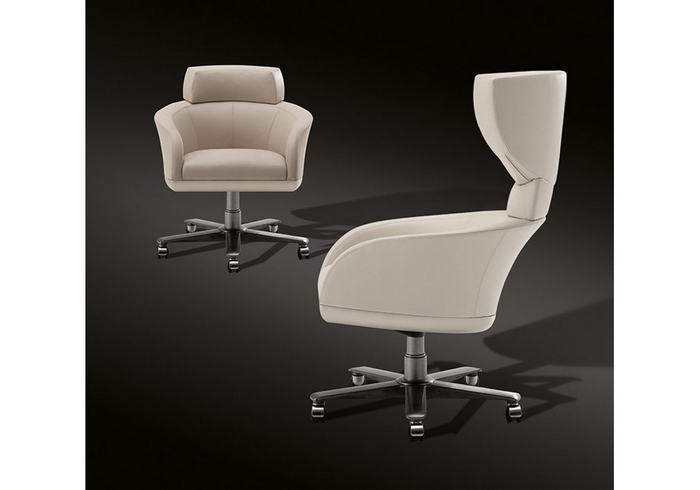 Selectus is a swivel armchair designed by Léon Krier for Giorgetti. Swivel armchair with the adjustable seat height by means of a gas spring. He upholstery is available both in fabric and leather.