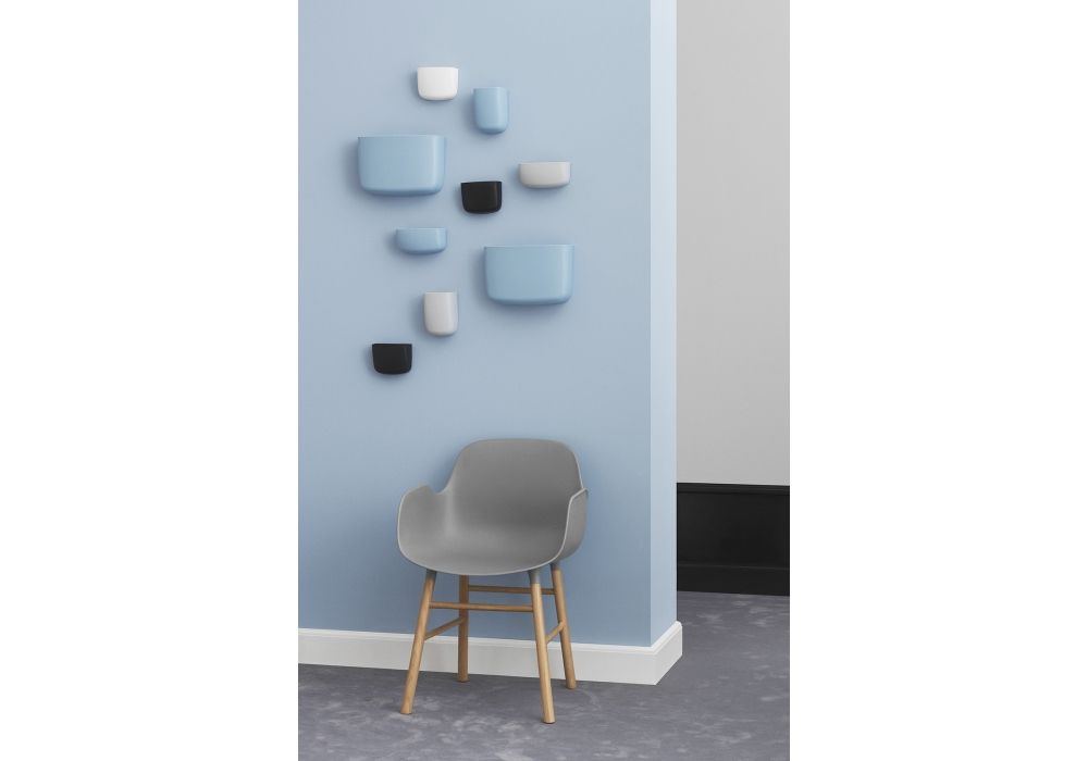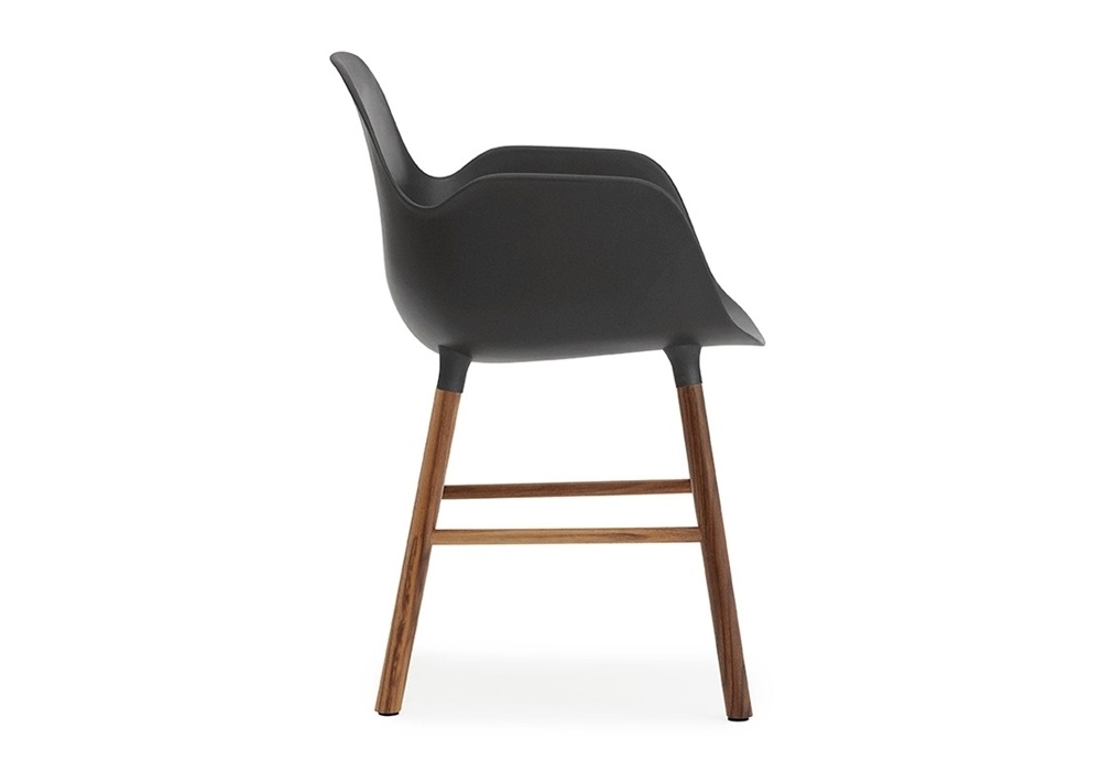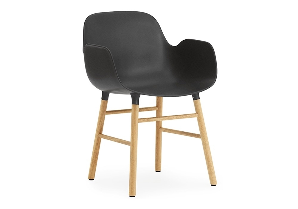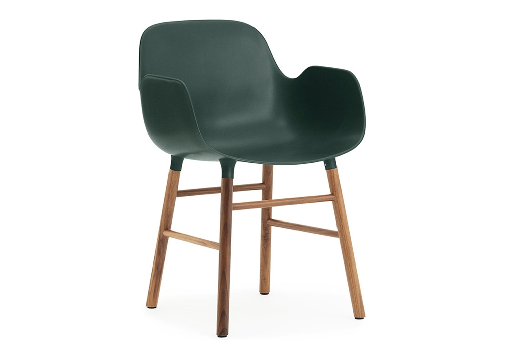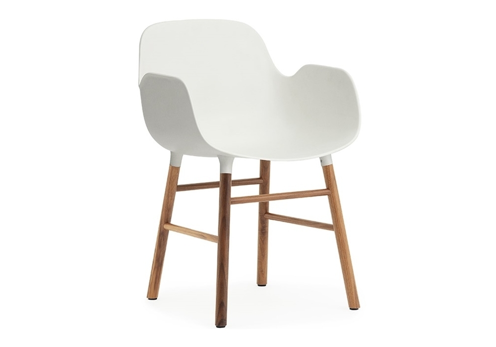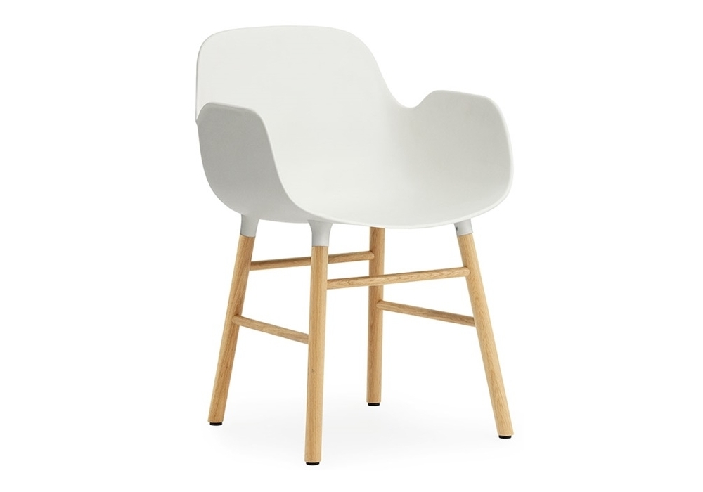 Form von Simon Legald für Normann Copenhagen entworfen, ist ein Sessel mit Sitz, Rücken und Armlehnen aus Polypropylen. Die tragende Struktur und die Beine sind aus Eichen- oder Nussbaumstäben gefertigt. Form ist in verschiedenen Ausführungen und Ausführungen erhältlich.