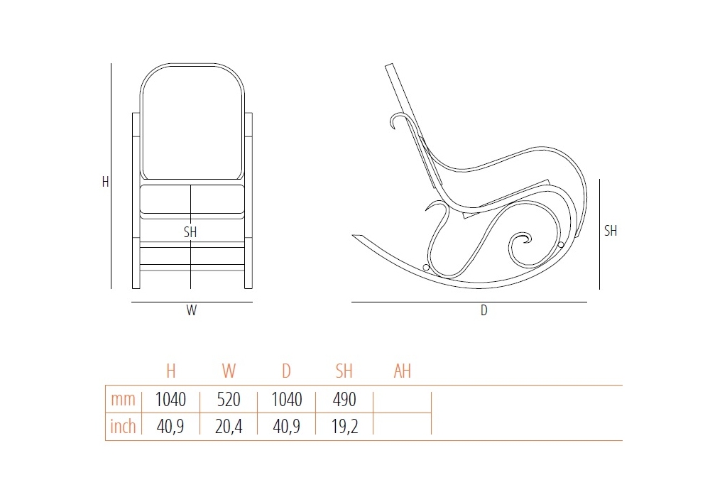 Schaukelstuhl von Gebrüder Thonet Vienna entworfen, ist eine Schaukel aus gebogener Buche, erhältlich in verschiedenen Ausführungen. Sitz und Rückenlehne aus Wiener Stroh.