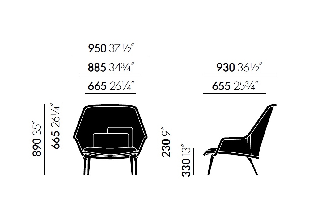 Rahmen/Bezug: Stahlrohrrahmen mit darübergezogenem, formgestricktem, extrem belastbarem Textil. Polster: Polyurethanschaum und Polyesterwatte, inkl. Sitz- und 2 Rückenkissen. Untergestell: Beine aus Aluminiumguss poliert oder beschichtet. Gleiter: Alle Füsse mit Gleitern für Teppichboden oder wahlweise auch mit Filzgleitern für harte Böden.