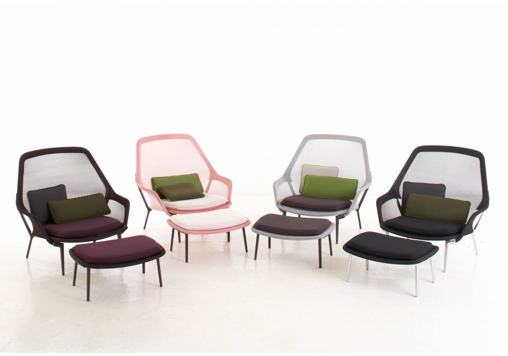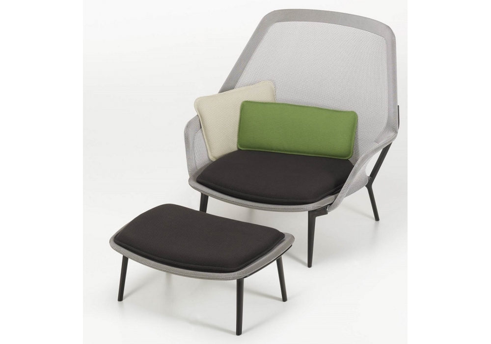 Slow Chair ist ein Sessel von Ronan & Erwan Bouroullec für Vitra entworfen. Diese Bespannung aus Strickstoff verleiht Slow Chair einen angenehm weichen und ergonomisch richtigen Sitzkomfort, der durch dünne Sitz- und Rückenkissen noch gesteigert wird. Das leicht transparente Bezugsmaterial ersetzt dabei die dicken Polster traditioneller Sessel und gibt dem ausladenden eine grosse Leichtigkeit.