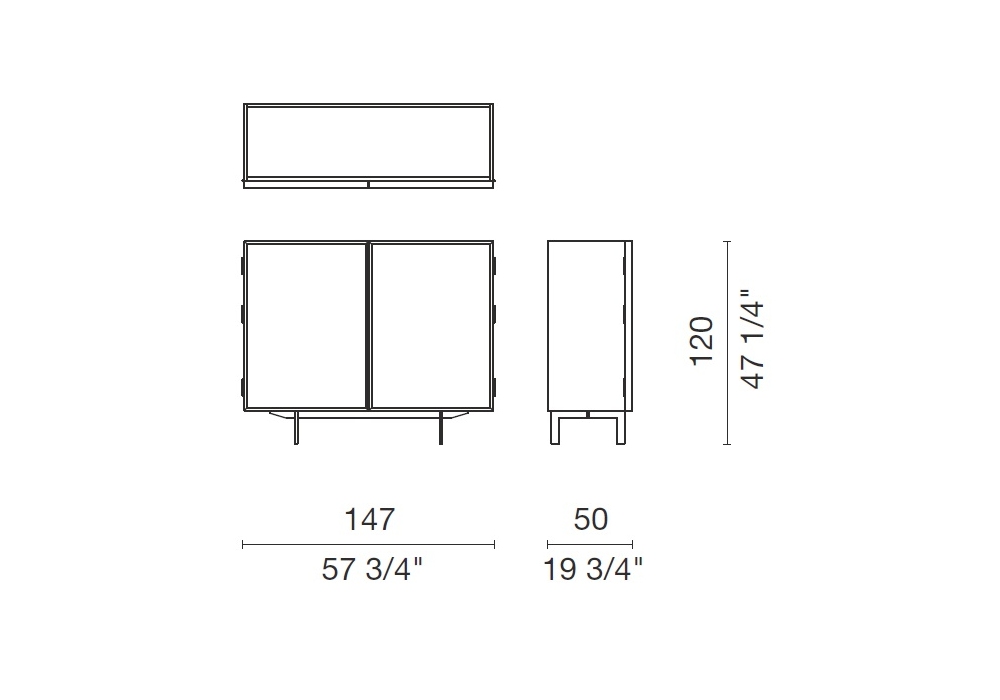 Lochness von Piero Lissoni für Cappellini entworfen, ist ein hohes Sideboard mit zwei Flügeltüren, Metallgestell und Struktur aus mitteldichten Holzpartikeln mit Melaminbeschichtung. Innen ist es mit Regalen und Schubladen ausgestattet. Verfügbar in lackierter oder Holzausführung.