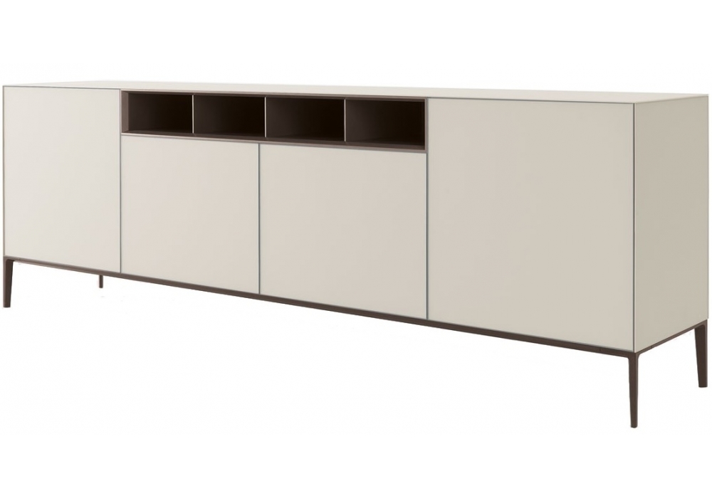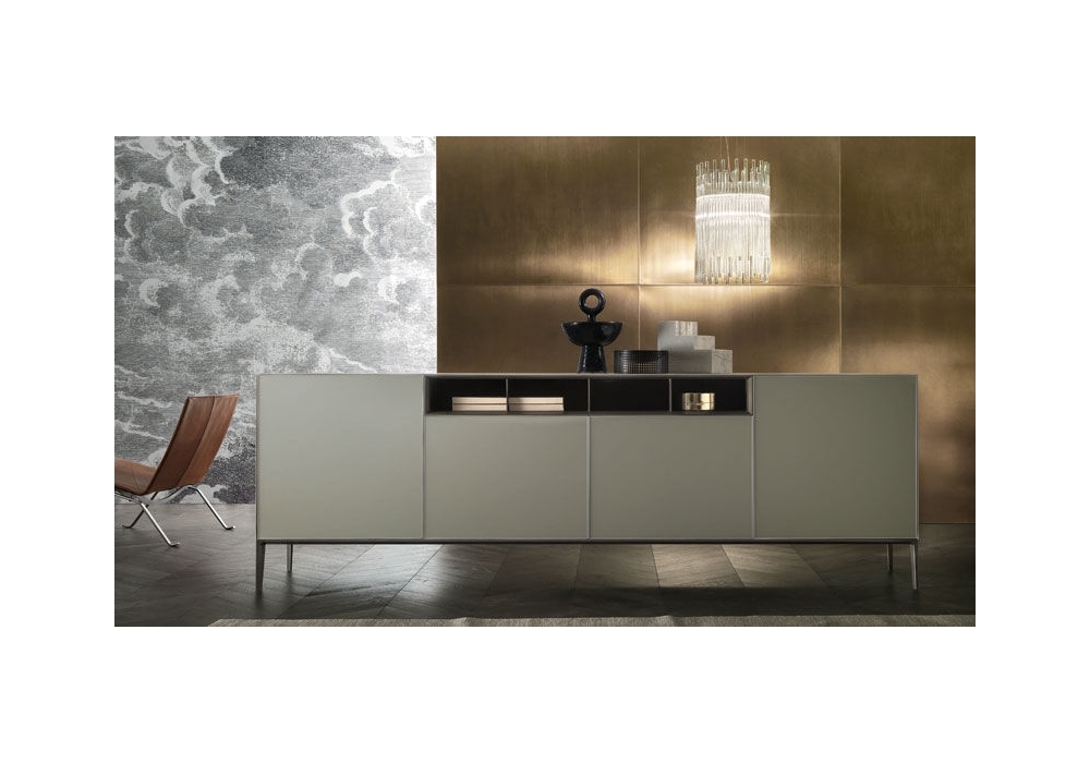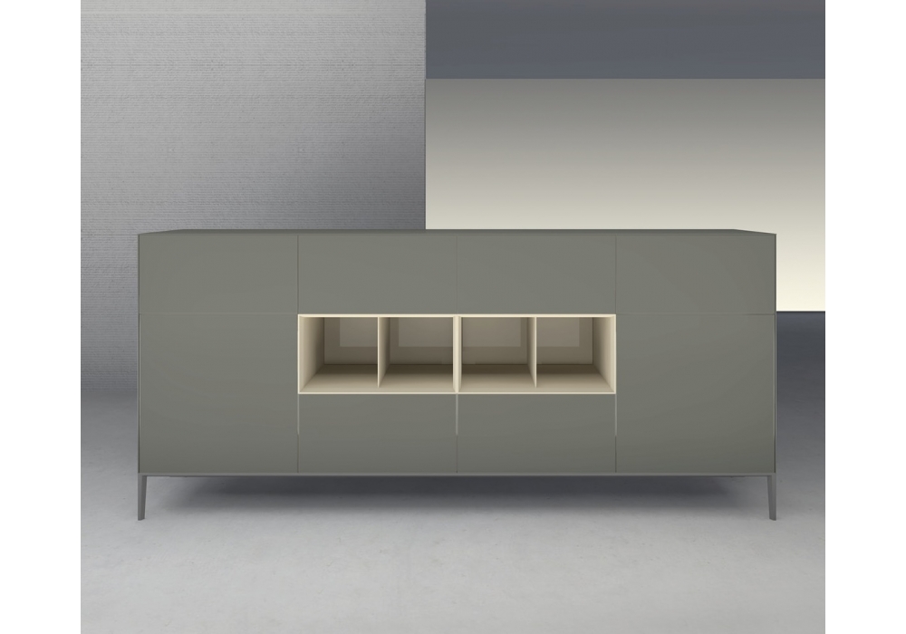 Self Up von Giuseppe Bavuso für Rimadesio entworfen, ist ein modulares System für jeden Bereich des Hauses, als Einzelelement oder Raumteiler einsetzbar, als Kommode, hohes Schubladenelement oder als hängendes Kastensystems. Ein System mit vielen Möglichkeiten auch dank einer großen Auswahl an Ecolorsystem Glasfarben. Self bietet eine große Freiheit an Modularität sowohl in der vertikalen als auch in der horizontalen. Das System besteht aus Schubladen und Flügeltüren, welche komplett aus lackiertem Glas verkleidet sind. Die offenen Fächer sind aus lackiertem Holz in Ecolosystem Farben. Die freistehenden Elemente stehen auf Aluminiumsockel mit verstellbare Füßen. Auf dieser Seit: Abgehängte. Einer der schönsten Eigenschaften des Systems Self ist sein durchgehendes Top aus lackiertem Glas in seinen 66 Farben des Ecolorsystem, glänzend oder matt. Das Ergebnis ist nur durch die Technik der Glasbearbeitung von Rimadesio möglich. Die freistehenden Elemente des Systems Self, können sowohl Einzel, als auch Beidseitig genutzt werden. Ein neuer Ausdruck, welches durch subtile Linien und durch die Tiefe des Glases hervorgehoben wird