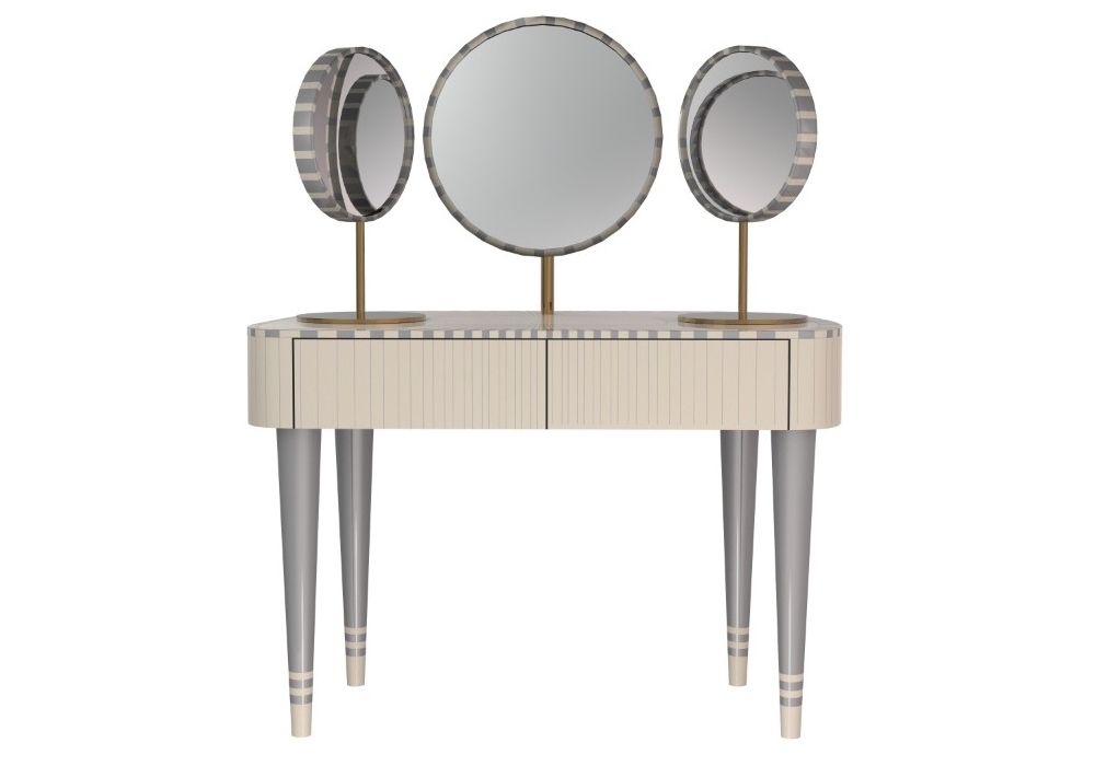 Woman In Paris von Matteo Cibic für Scarlet Splendor entworfen, ist ein Toilettentisch aus MDF, Sperrholz und Messing. Verfügbar in mehreren Ausführungen.