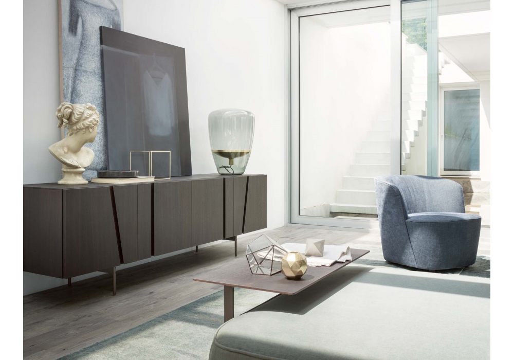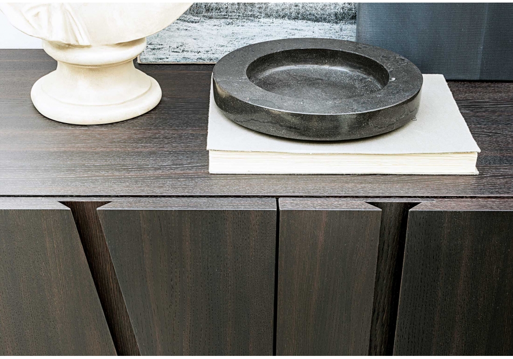 Picture von Cairoli & Donzelli für Lema entworfen, ist ein Sideboard mit Struktur und Frontseite in wärmebehandelter Eiche und Base in Bronze Metall.