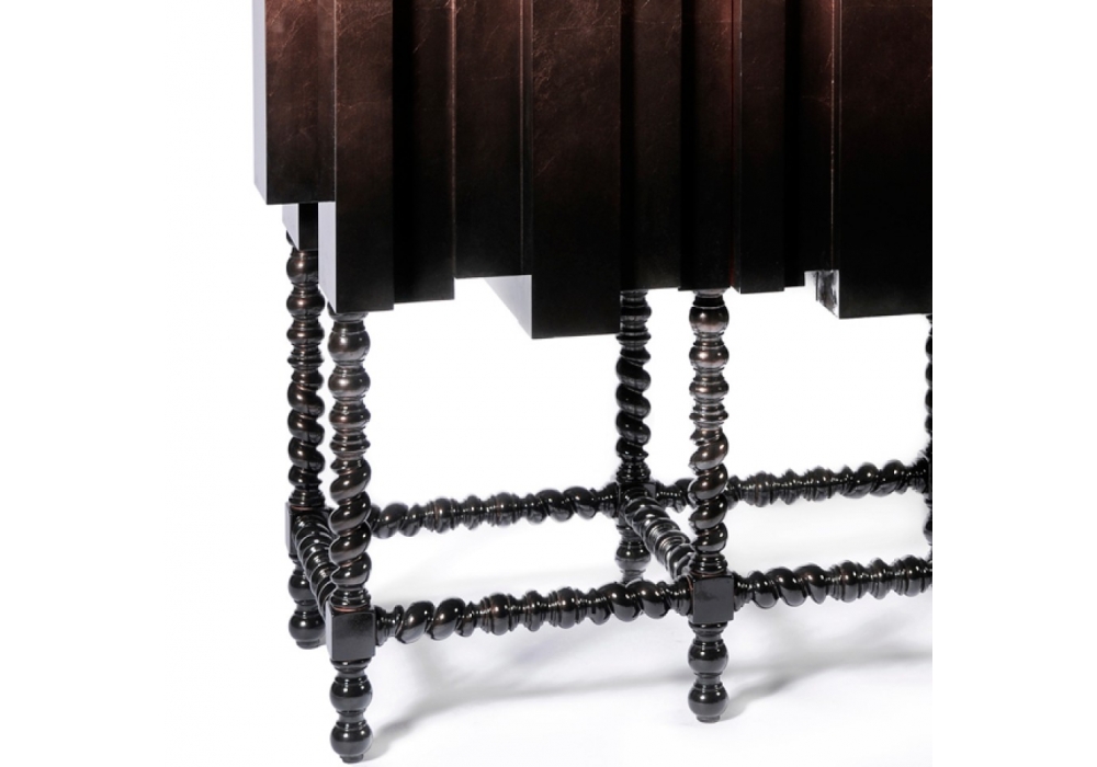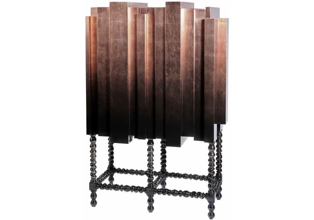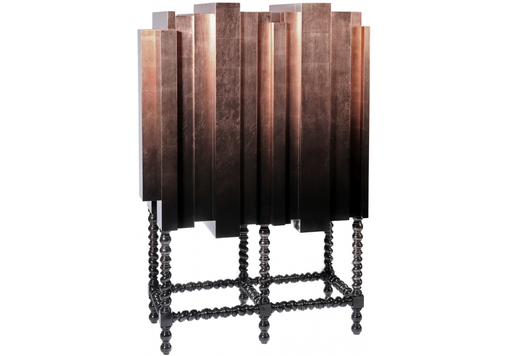 D.Manuel von Boca Do Lobo entworfen, ist ein schöner Fächerschrank mit Struktur aus Holz, bedeckt mit einem speziellen Ineinander greifen des rostfreien Stahls. Die Basis ist aus Mahagoni geschnitzt Innenraum wird mit Einlegeböden abgedeckt in Blattgold mit einem lichtdurchlässigen orange Hochglanzlack beendet kompartiert.