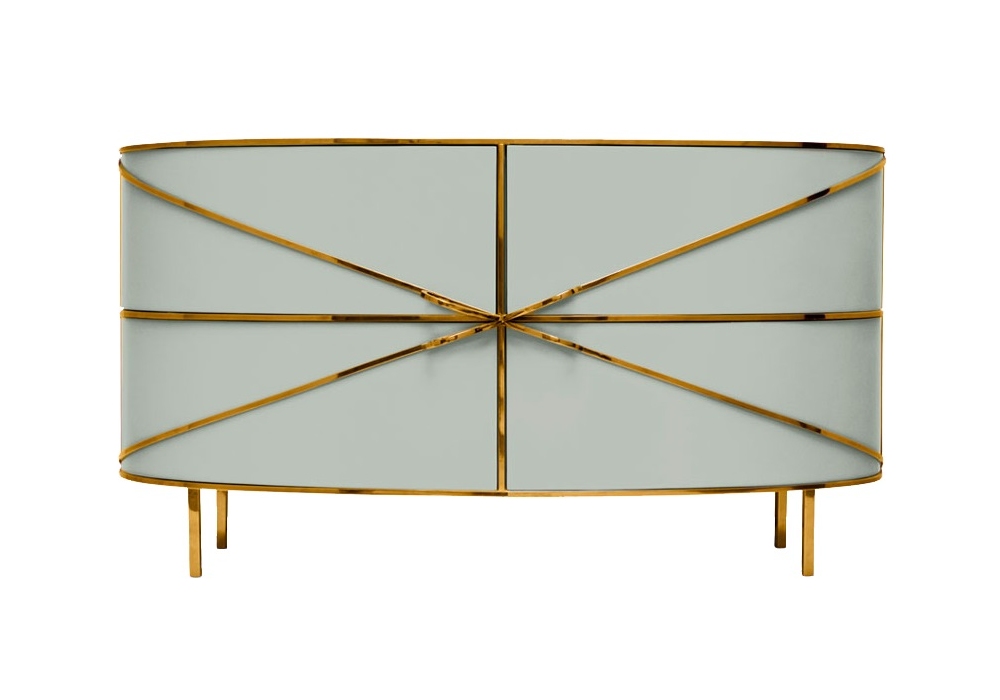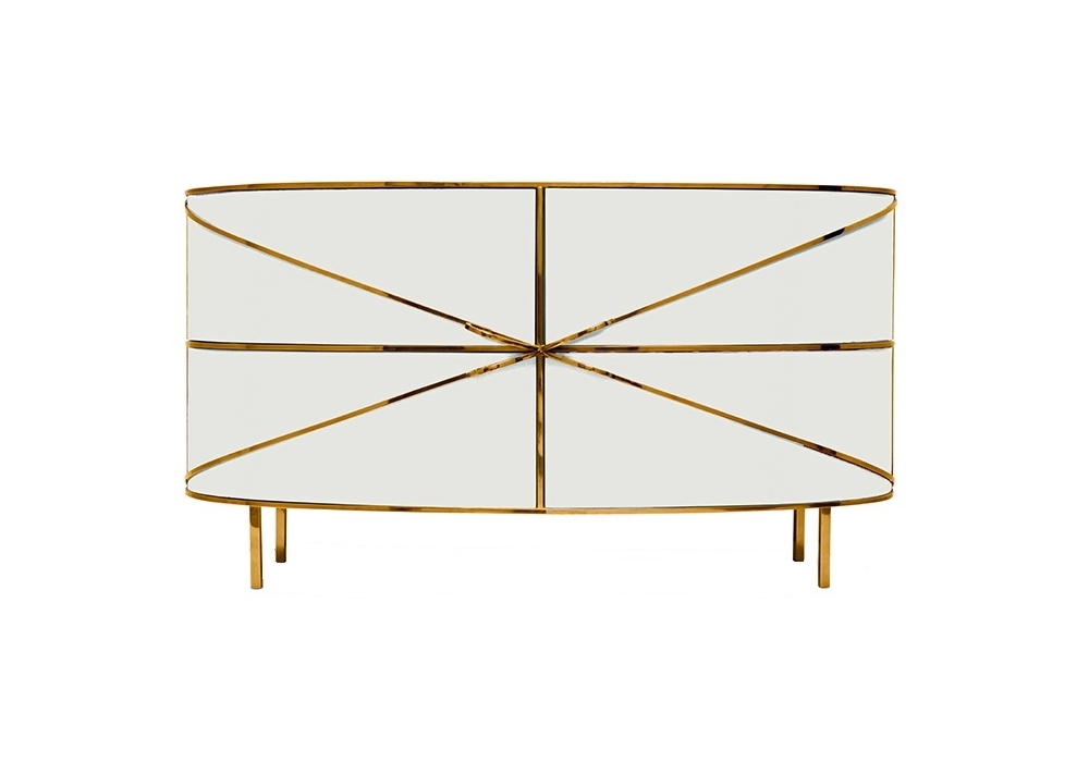 88 Secrets Sideboard von Nika Zupanc für Scarlet Splendour entworfen, ist ein elegantes und sinuous geformtes Anrichte. Metallische Details in Gelb oder Roségold. Verfügbar in mehreren Ausführung.