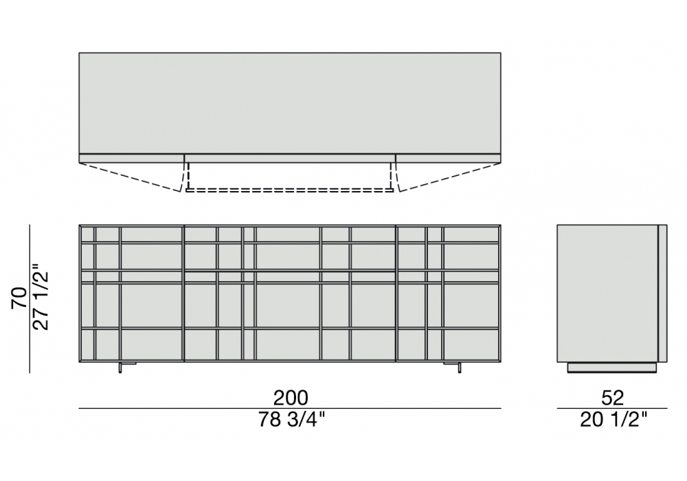 Kilt, von Marconato & Zappa für Porada entworfen, ist ein Sideboard mit Dekoration aus massivem Nussbaum Canaletta und schwarzen Metallgestell. Die Handgriffe für die Seitentüren und der zentralen Schubladen (das obere regelmäßig und das untere Tief) in der Dicke der Dekoration gerillt sind.