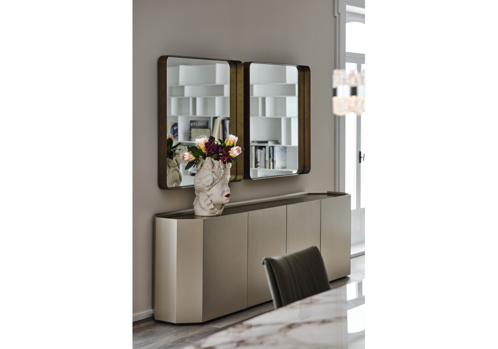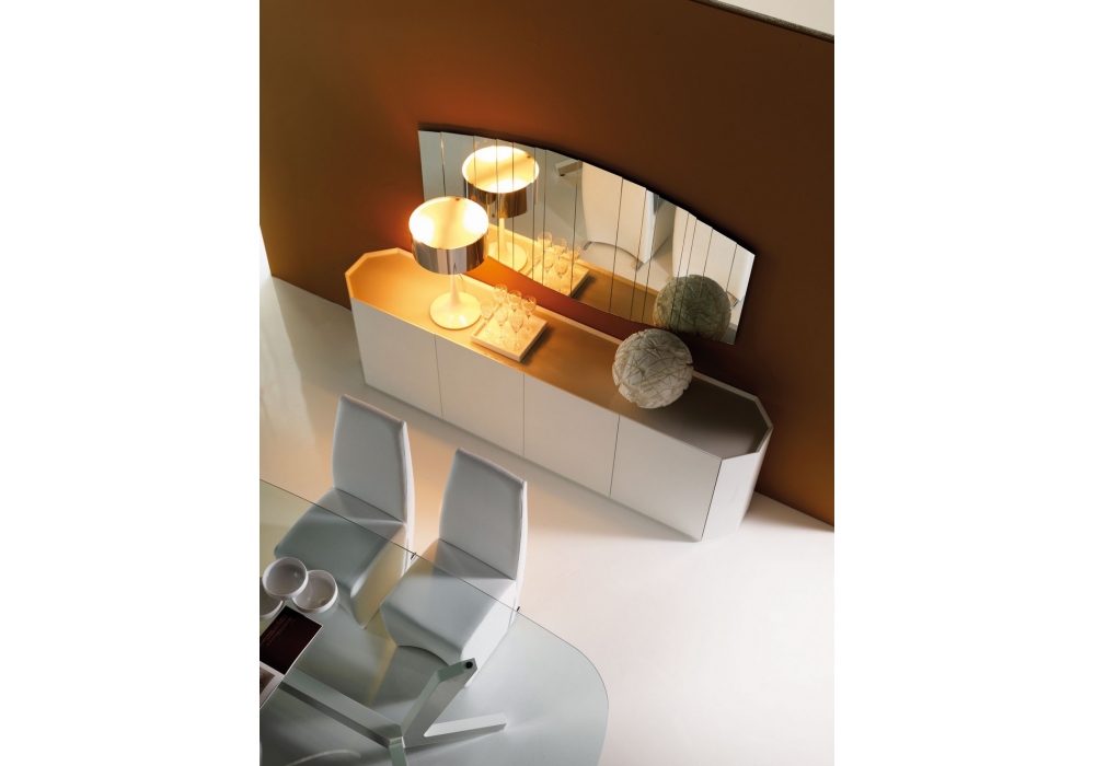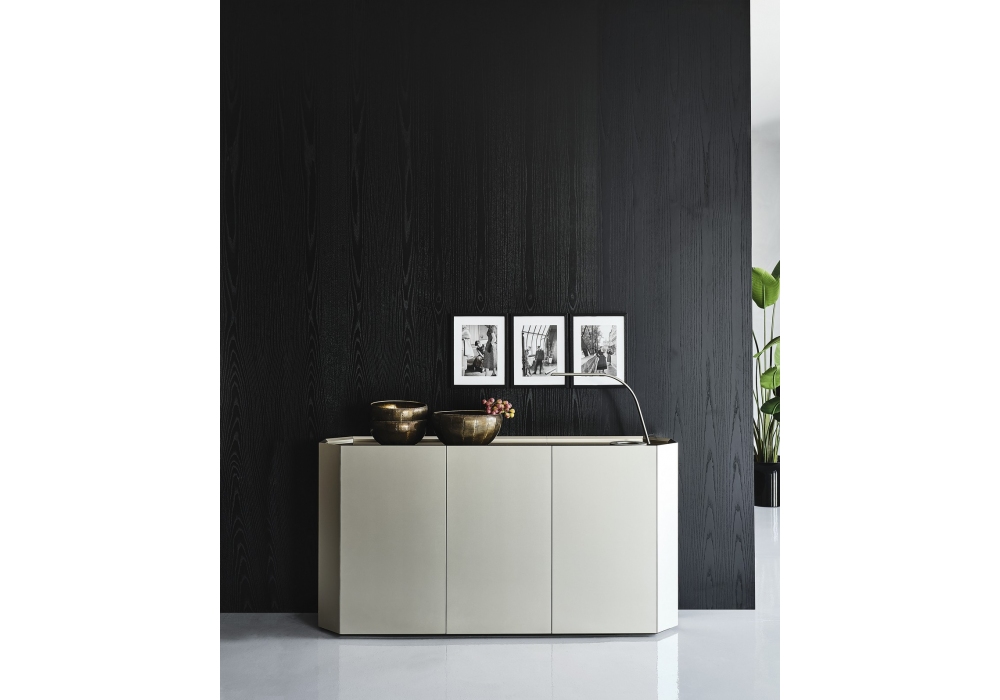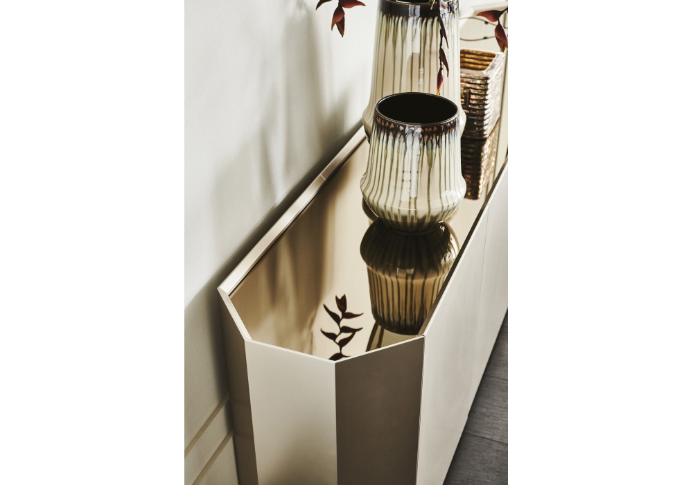 Chelsea, von Alessio Bassan für Cattelan Italia entworfen, ist ein Sideboard mit Struktur aus Holz weiß matt lackiert oder titan lackiert. Top extra hell Glas weiß lackiert oder Bronze verspiegeltem Glas. Innenböden aus Klarglas. Verfügbar in verschiedenen Abmessungen.