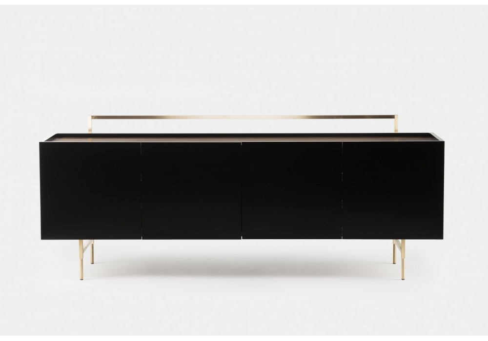 Trunk von Neri & Hu für De La Espada entworfen, ist ein Sideboard mit Außen aus lackiertem HDF und Regalen verfügbar in verschiedenen Ausführungen. Rahmen aus gebürstetem Messing.