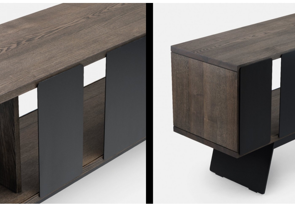 Different Trains von Matthew Hilton für De La Espada entworfen, ist ein Schrank aus Holz verfügbar in verschiedenen Ausführungen mit vertikalen Platten aus Laminat verfügbar in 4 Farben und schwarz lackierten Stahlbeinen. Auch verfügbar in 6 Abmessungen.