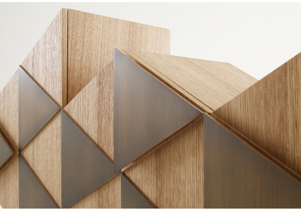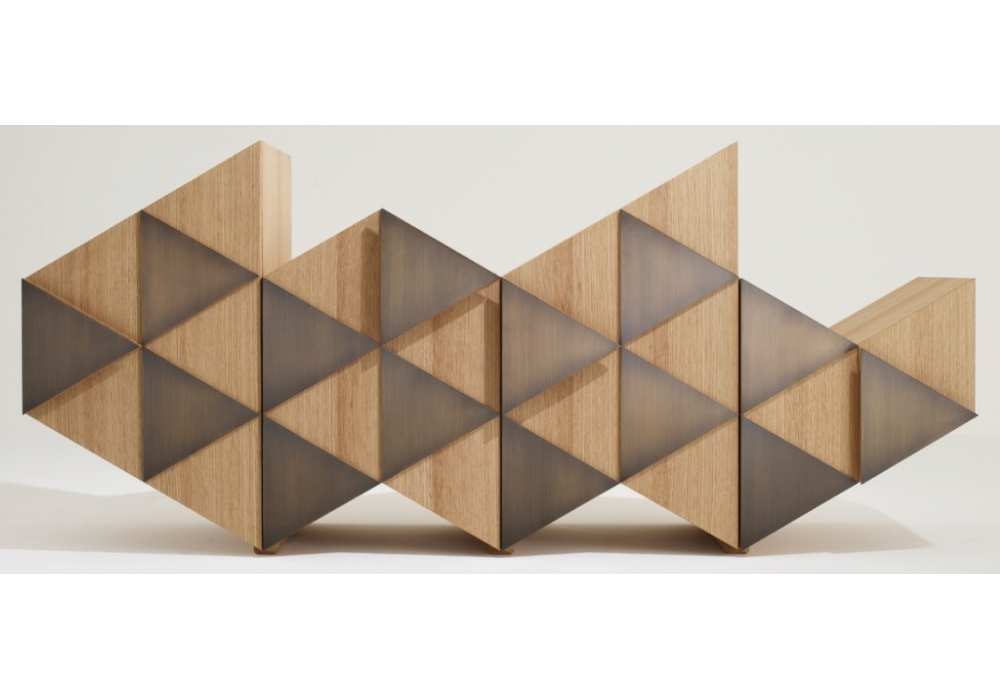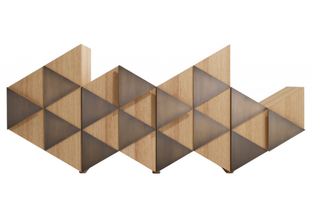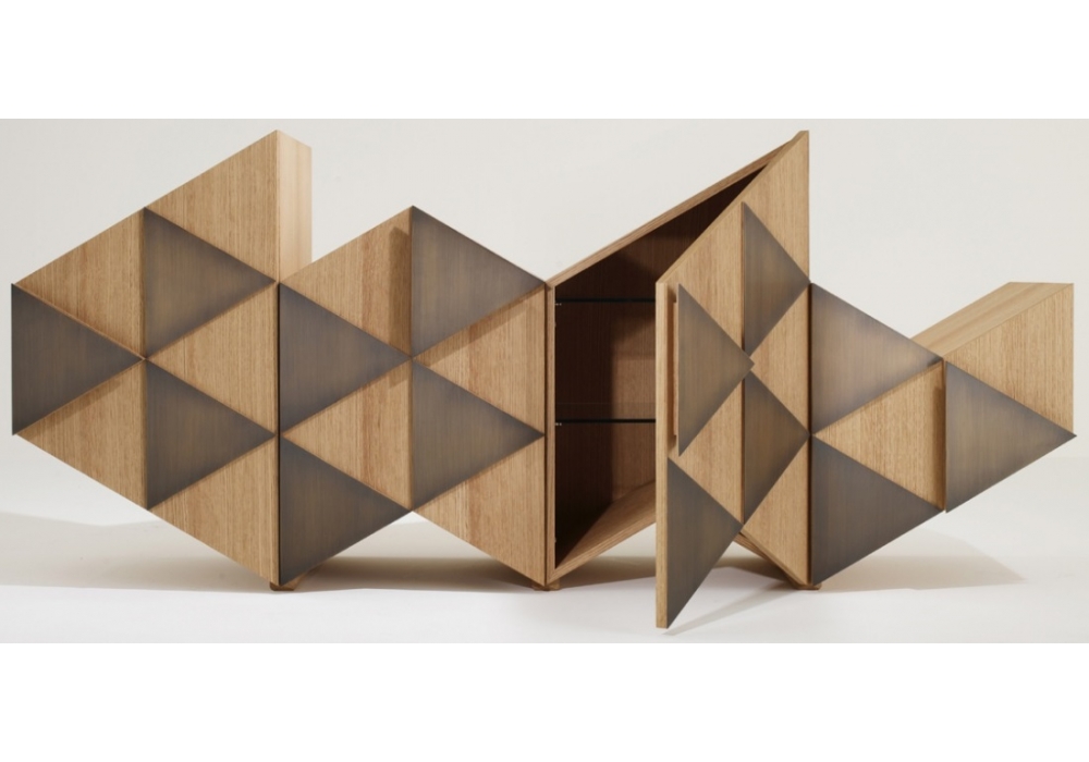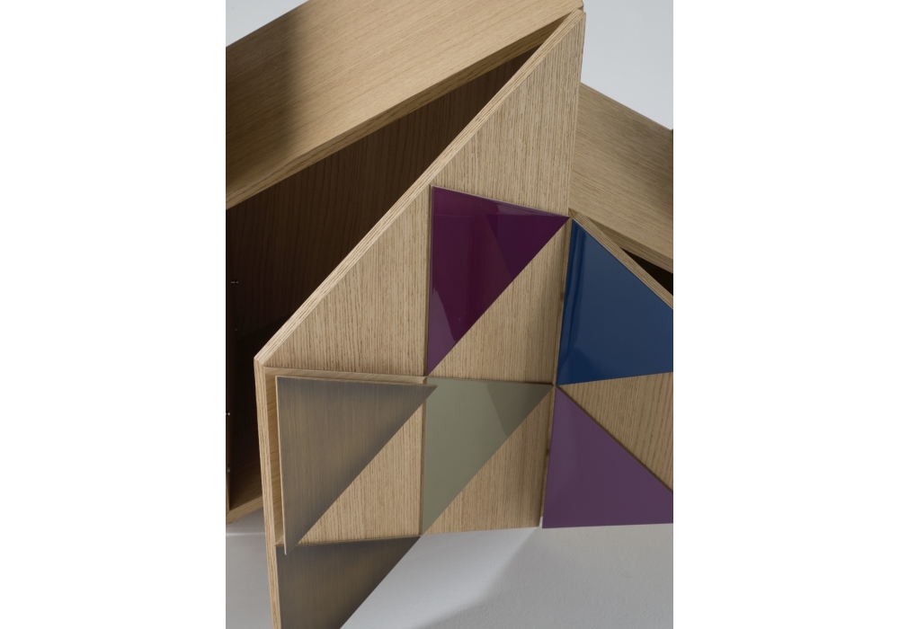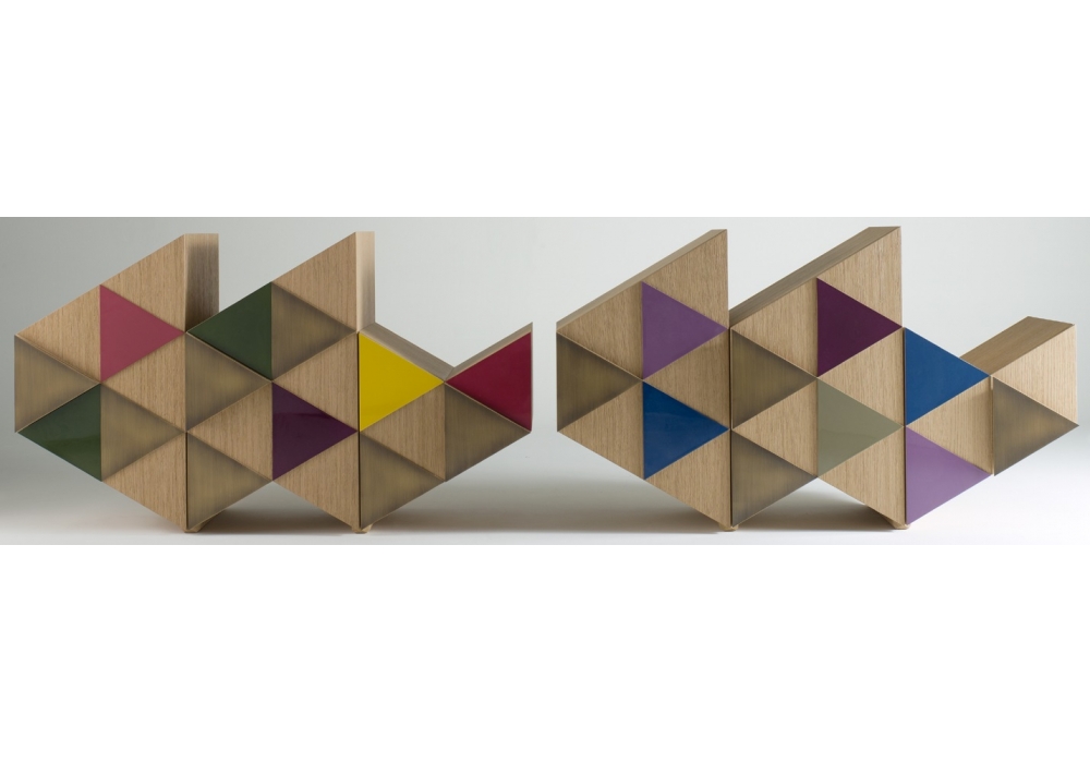 Arlequin C von Ferruccio Laviani für Emmemobili entworfen, ist ein Sideboard mit einer unüblichen Form und mit Türen, die von Dreiecken dekoriert werden. Die Dreiecke folgen die Geometrie der frontalen Seite. Verfügbar in verschiedenen Ausführungen und 2 Versionen.