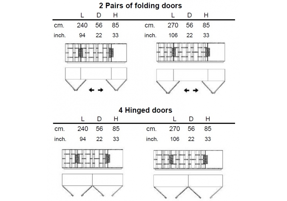 | Abmessungen | L 240 x W 56 x H 85 cm; L 270 x W 56 x H 85 cm |