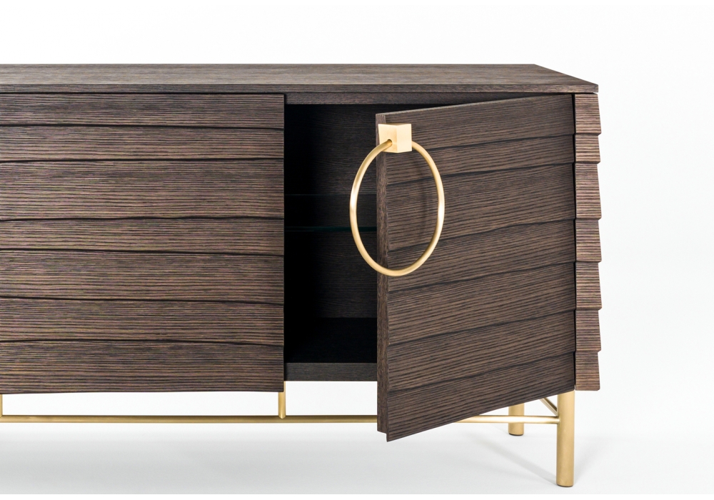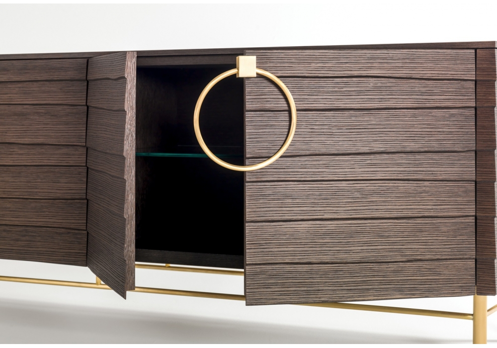 Slice von Ferruccio Laviani für Emmemobili entworfen, ist ein Sideboard aus Holz verfügbar in verschiedenen Ausführungen von einer Messingen Untergestell gestützt. Verfügbar in 2 Versionen: mit Messinggriffen oder ohne Griffe mit Push-Pull-Mechanismus. Auch verfügbar in 3 Abmessungen.