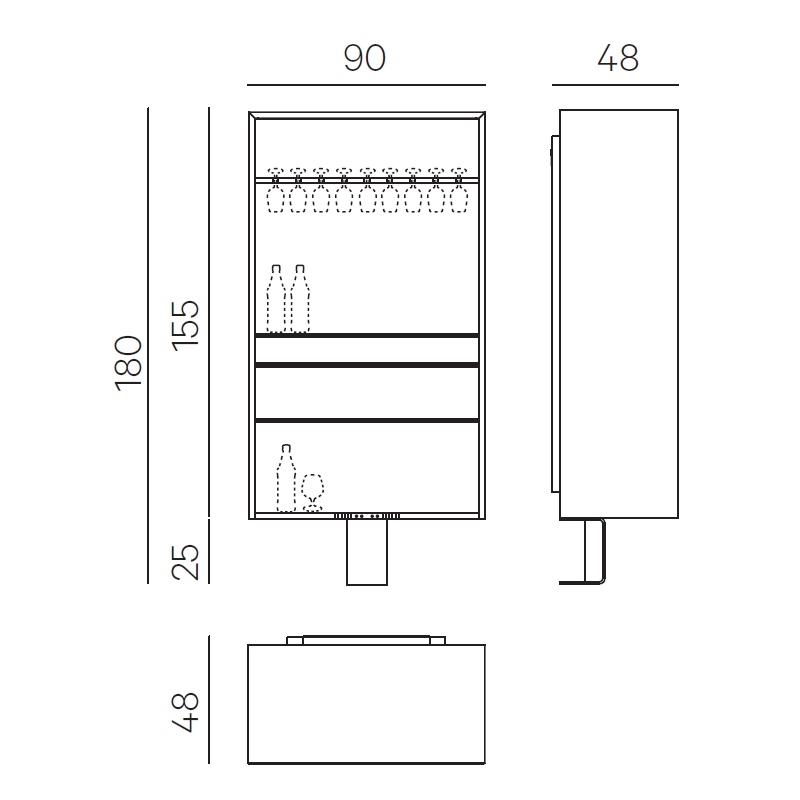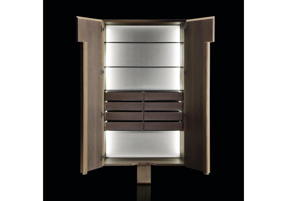 Frame Cabinet von Massimo Castagna für Henge entworfen, ist eine Kommode mit Wandbefestigung, Struktur und Türen aus wärmebehandeltem Holz, Sockel aus handpoliertem Messing. Regale aus gehärtetem Glas in Bronze. Verfügbar in zwei Modellen. LED-Beleuchtung auf Anfrage verfügbar.