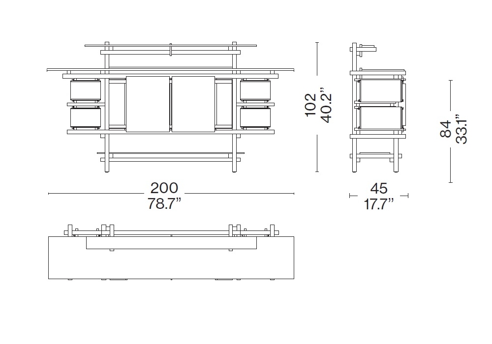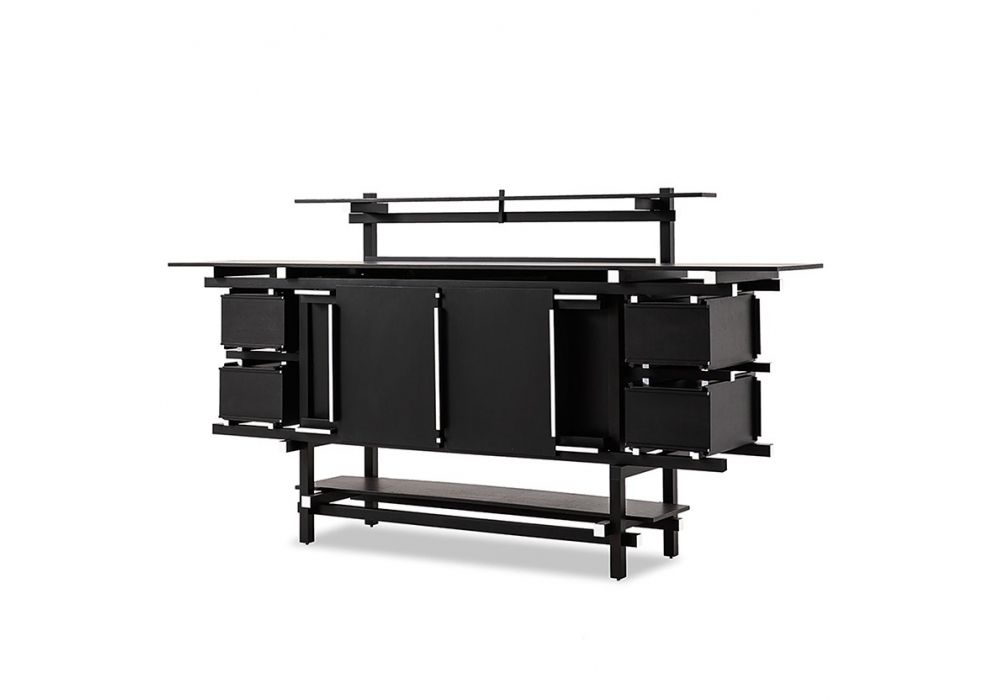 636 Elling Buffet von Gerrit Thomas Rietveld für Cassina entworfen, ist ein Sideboard mit mehreren Ablagefächern, Regalen und einer Gestell, die als Bücherregal verwendet werden kann. Aus Holz, nur in einer Größe.
