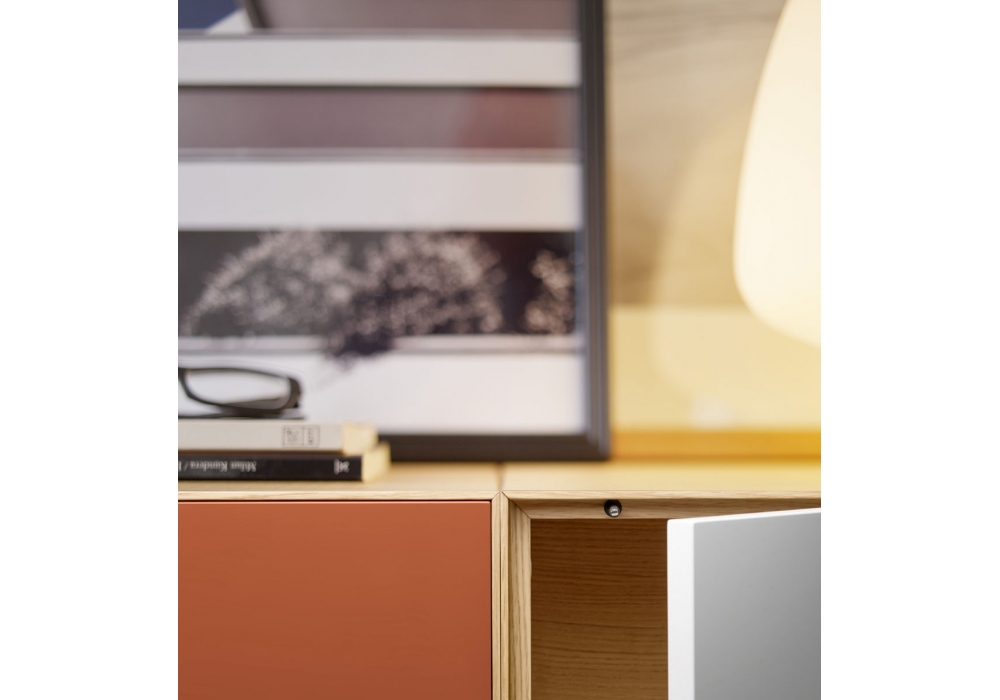 Lauki von Ibon Arrizabalaga für Treku entworfen, ist ein Sideboard aus der Lauki-Kollektion. Die Komposition besteht aus vier abgehängten Modulen, 3 Türen und einem Aufenthaltsraum. Anpassbar in verschiedenen Lack- und Holzoberflächen.