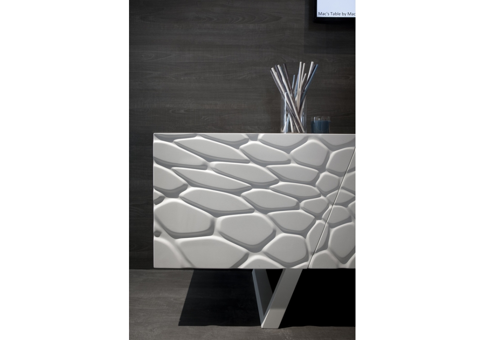 Move Soft Touch von Mac Stopa für Tonon entworfen, ist ein Anrichte mit einer Struktur aus furniertem Holz (Eiche, Canaletto-Walnuss und lackiert) und einer Vorderseite aus dem innovativen 3D-Material "Soft Touch" das in verschiedenen Ausführungen erhältlich ist. Beine aus schwarz oder weiß lackierter massiver Buche.