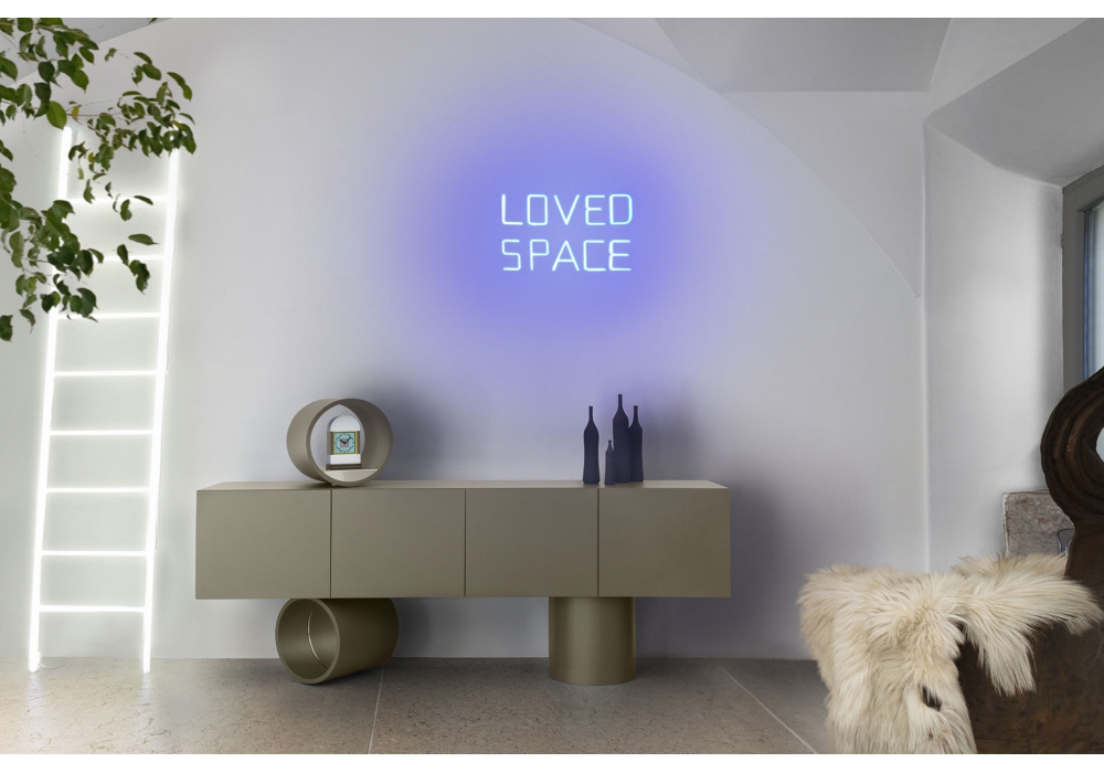 Giunone von Claudio Bitetti für Mogg entworfen, ist ein Sideboard mit MDF-Struktur komplett mit 4 Türen und internen Glasböden. Die Füße und der Dekobehälter sind immer im gleichen Finish wie das Sideboard. Verfügbar in mehreren Modellen.