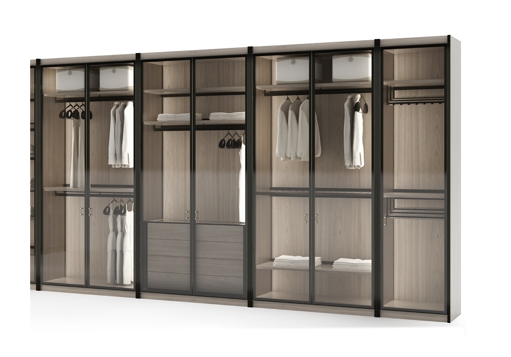 Miyabi von Centro Ricerche Giorgetti für Giorgetti entworfen, ist eine Kommode aus Esche aus Glas- oder Holzflügeltüren und LED-Beleuchtungssystem. Verfügbar in mehreren Ausführungen und Modellen.