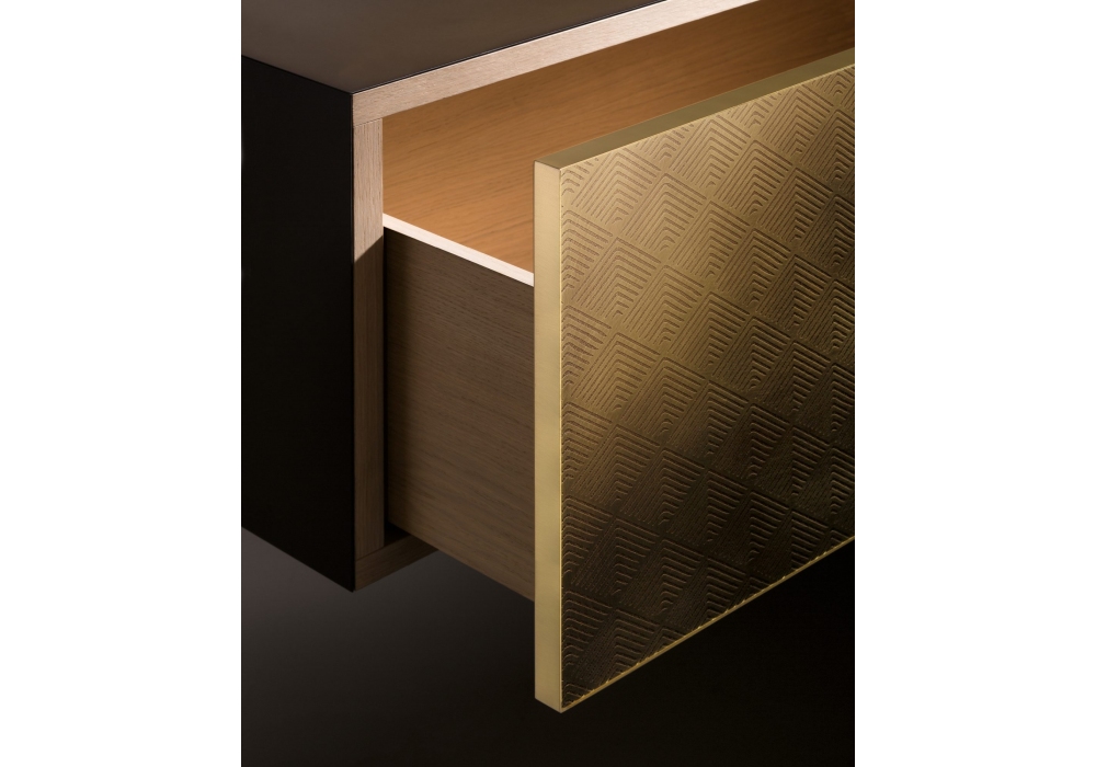 Tako von Filippo Pisan für DeCastelli entworfen, ist ein hängendes oder bodenbedecktes Sideboard aus Metall, das sich durch zwei große Schubladen mit Rillenöffnung auszeichnet. Verfügbar in mehreren Ausführungen und Abmessungen.