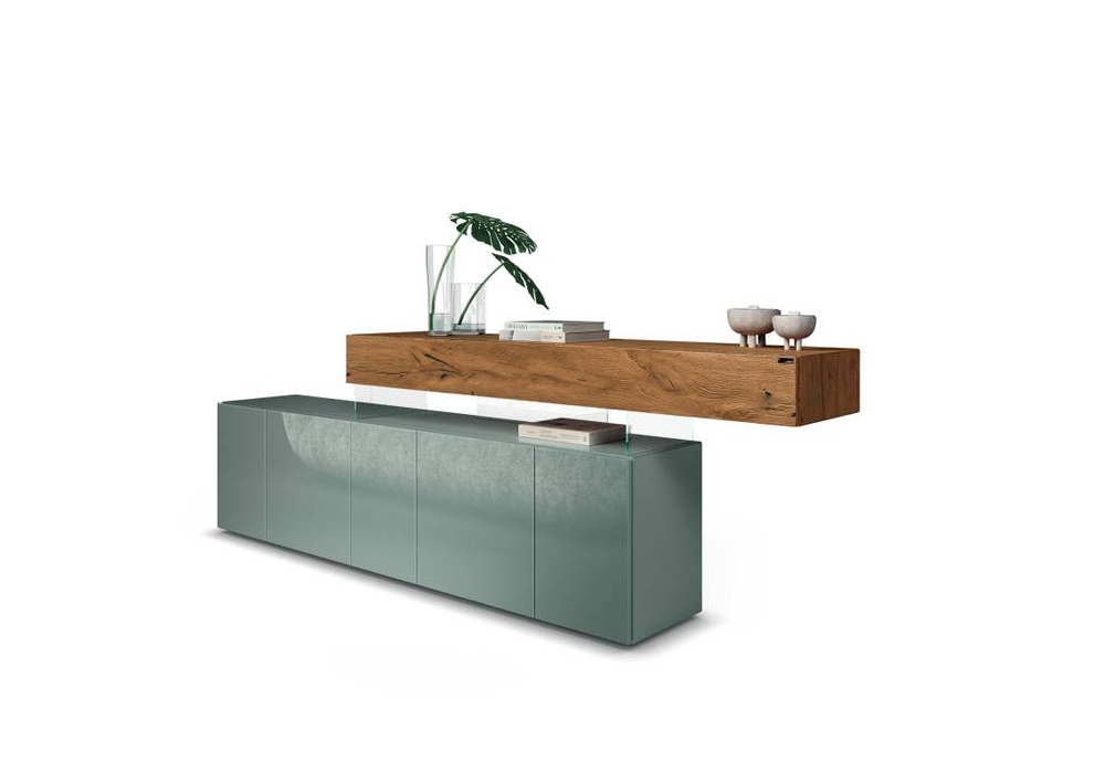 Air, entworfen von Daniele Lago für Lago, ist ein modernes Sideboard mit einem einzigartigen Design, das mit dem Kontrast zwischen festen und leeren Flächen spielt. Seine Volumen scheinen dank der transparenten Scheiben aus gehärtetem Glas zu schweben, was einen überraschenden Effekt von Leichtigkeit erzeugt. Einige Modelle sind als freistehende und doppelseitige Versionen erhältlich, die sich auch perfekt als eleganter Raumteiler in der Mitte des Raumes eignen. Erhältlich in den Ausführungen lackiert, poliertes Glas, mattes Glas und XGlass.