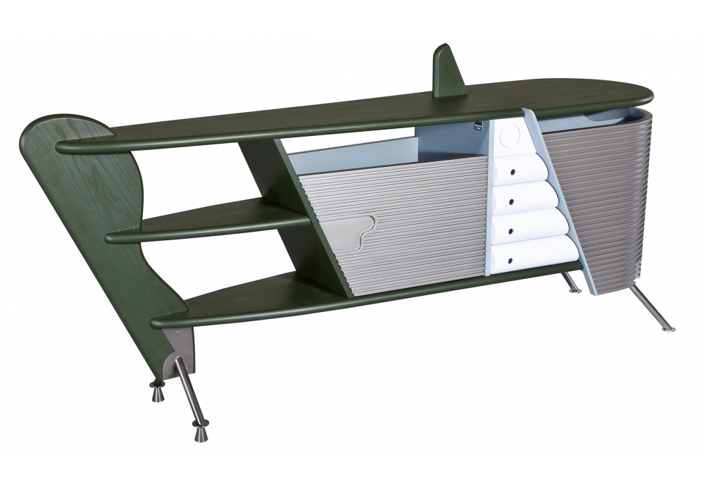 Bertrand von Massimo Iosa Ghini für Memphis Milano entworfen, ist ein Sideboard aus Holz und Metall.