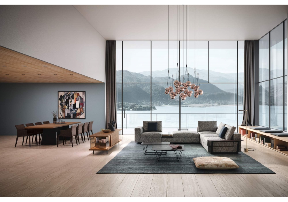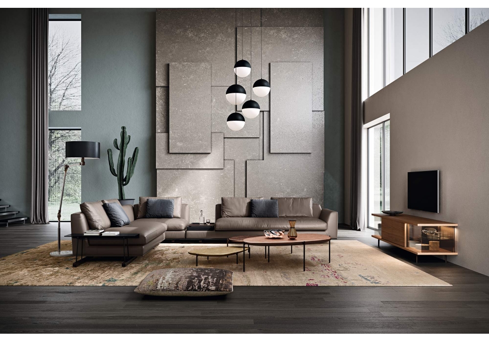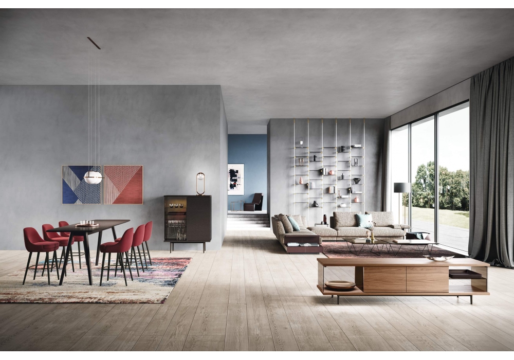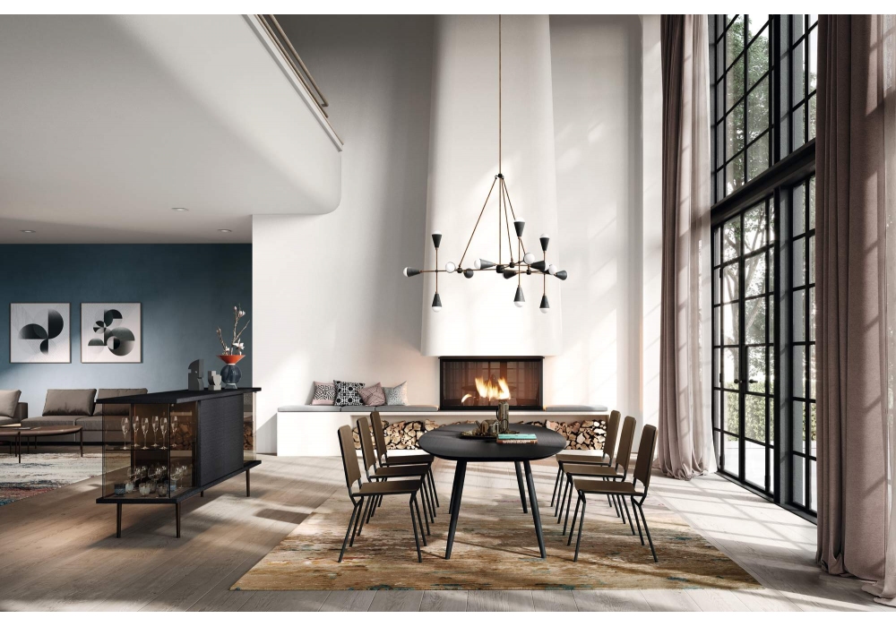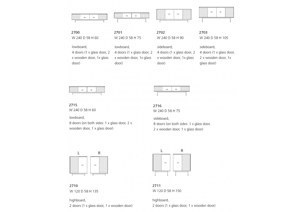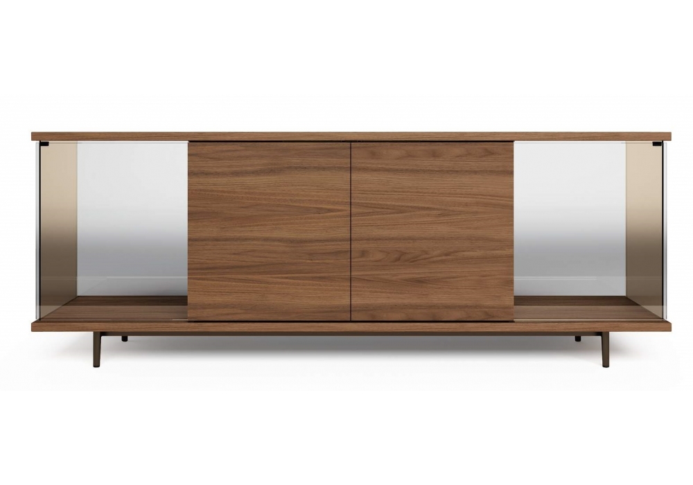 The Farns von Eoos für Walter Knoll entworfen, ist eine Sideboard-Kollektion erhältlich mit zwei, vier oder acht Türen. Einige Türen sind aus Sicherheitsglas transparent mit matt bronzefarben lackierten Stahlgriffen, andere aus furniertem und lackiertem Holz. Alle Türen lassen sich um 180 Grad öffnen. Platte aus Sicherheitsglas Bronze. Gestell aus lackiertem Stahl mit integrierter Höhenverstellung.