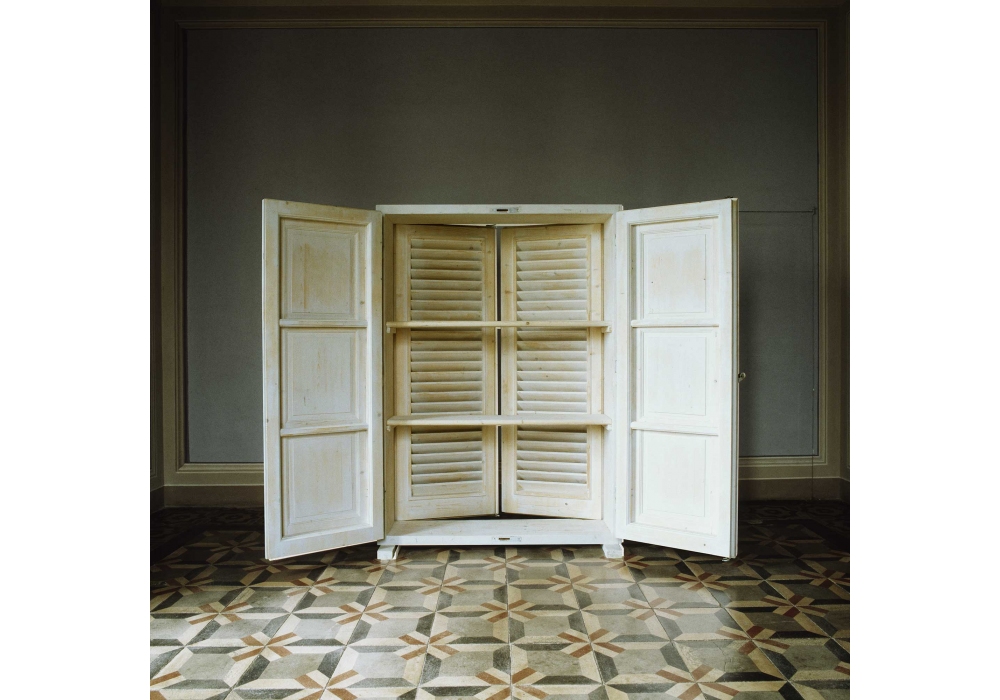 Persiana von Marco Bagnoli für Memphis Milano entworfen, ist ein Sideboard aus weißem Holz mit doppelt zu öffnenden Regalen mit Rollladentüren. Limitierte Auflage von 25 Stück.