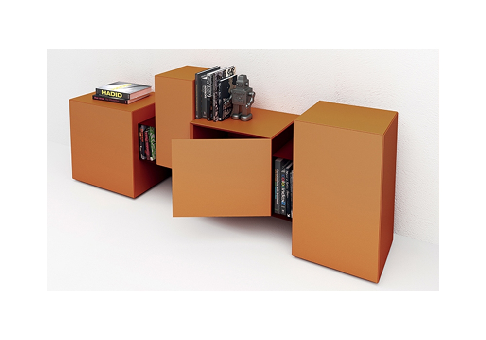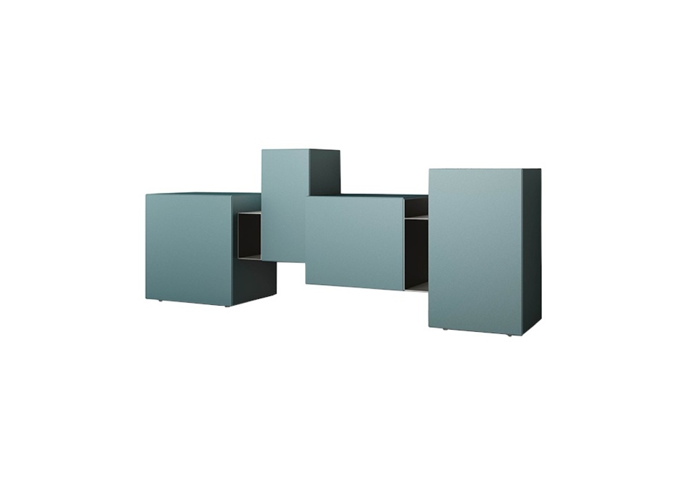 Brooklyn von Ferrucci & Vitale für Minotti Italia entworfen, ist ein Sideboard bestehend aus Behältern aus Agglomeratholz, geprägtes Finish in verschiedenen Farben erhältlich. Metalleinsätze in der gleichen Ausführung wie die Behälter oder in einer anderen Farbe erhältlich. Innenregal aus extra klarem Glas, das verschoben werden kann.