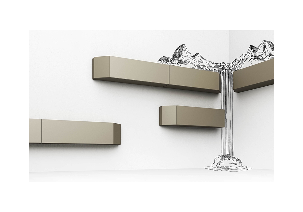 Canto von DSH für Minotti Italia entworfen, ist ein hängender Behälter aus Agglomeratholz, geprägtes Finish verfügbar in verschiedenen Farben. Die schräge Außenschulter kann mit oder ohne Spiegel sein und mit der Möglichkeit, die Position zu wählen: nach rechts oder links. Klappe oder Vasistas Türöffnung.
