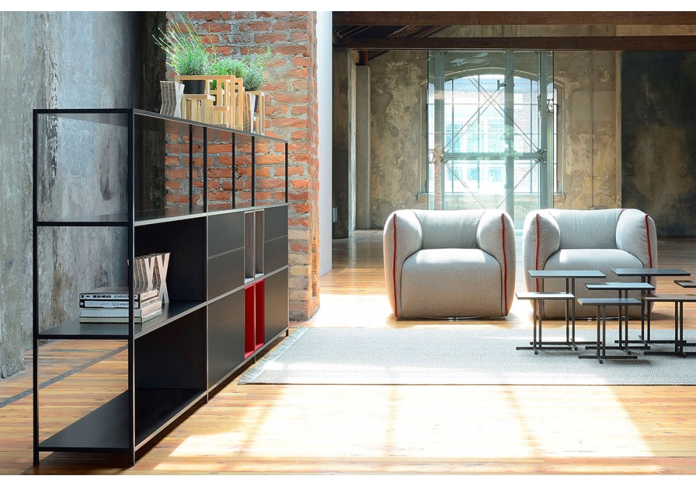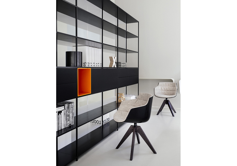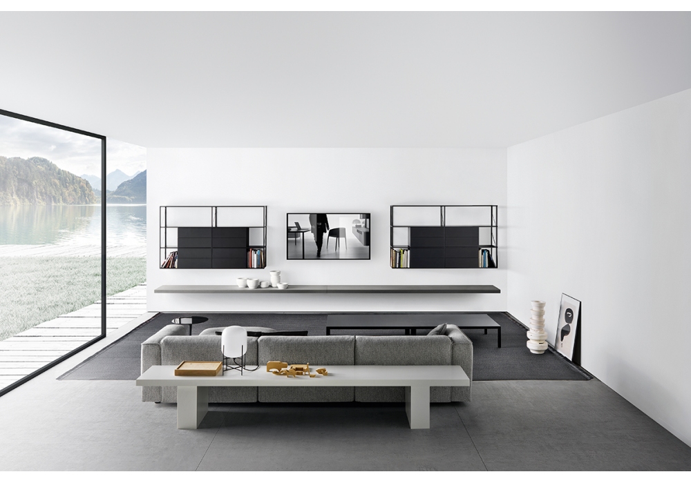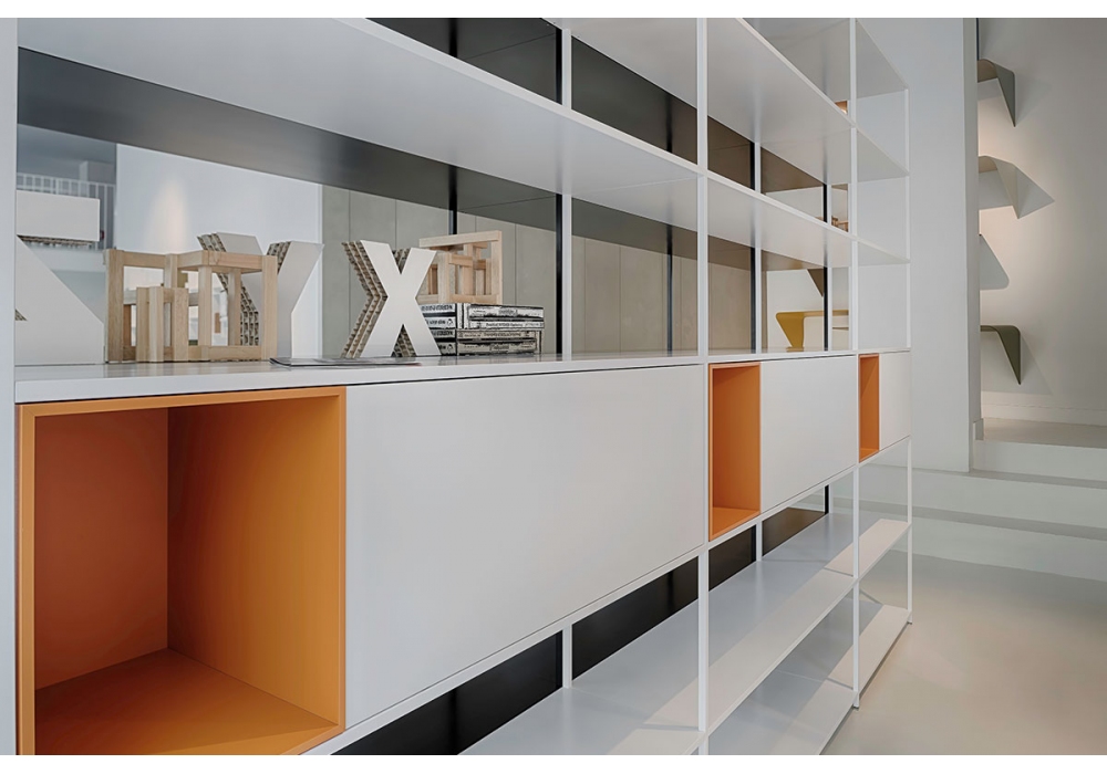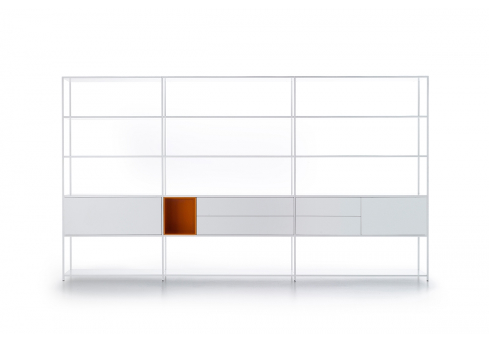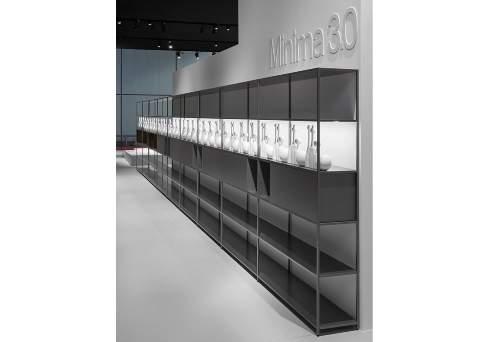 Minima 3.0 von Bruno Fattorini für MDF Italia entworfen, ist ein modulares System, das in 5 Typen unterteilt ist: FLOOR, WALL, SKETCH, SIDEBOARD und ROOM DIVIDER. Darüber hinaus stehen für die Bodenversion zwei neue Höhen - 261,5 und 298 - und Regalböden mit integrierter LED-Beleuchtung zur Verfügung.