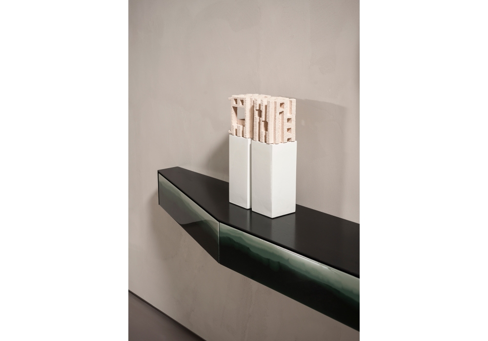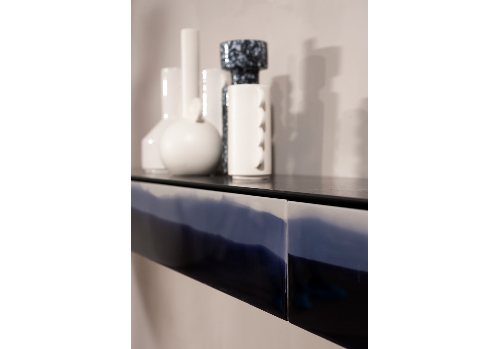 Altea von Draga & Aurel für Baxter entworfen, ist ein Hängeschrank aus MDF-Struktur, innen mit natürlichem Ahorn furniert und außen aus dunkelbraun gebeiztem Ebenholz und lackiert mit Wasserbasis. Schubladenfronten und Klapptür von Hand mit beschichteten Harzen verziert. Verfügbar in mehreren Ausführungen und Abmessungen.