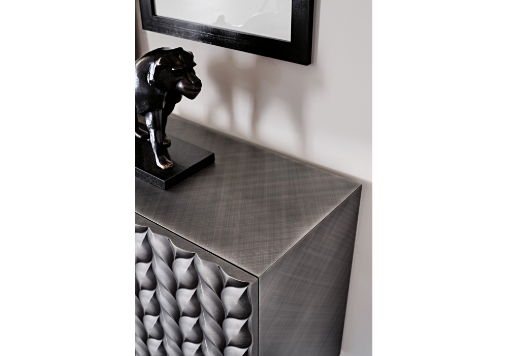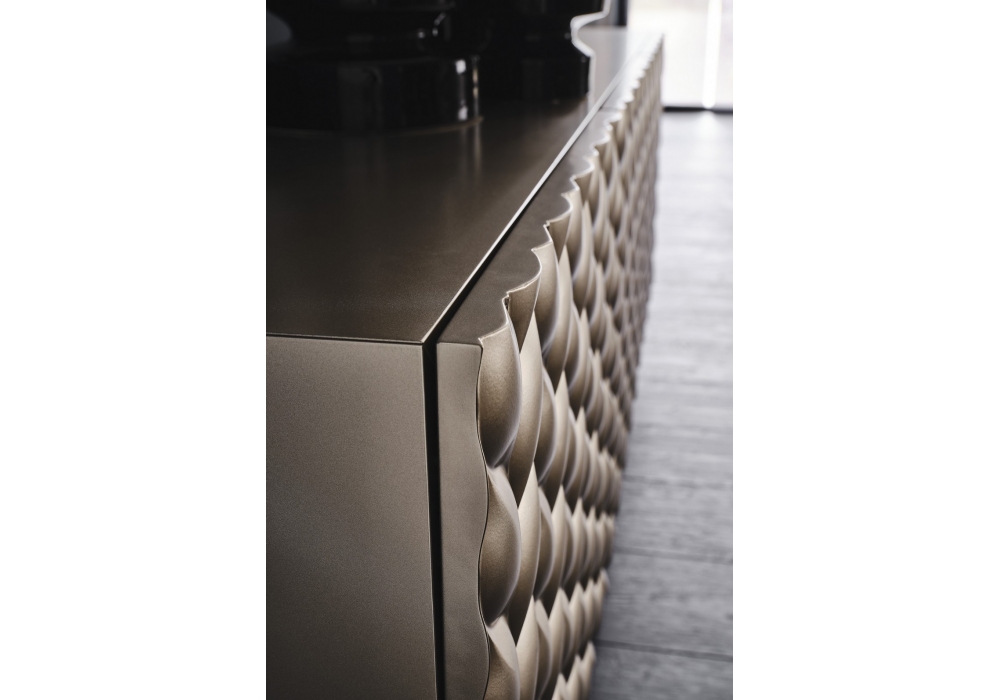 Lavander von Paolo Cattelan für Cattelan Italia entworfen, ist ein Sideboard aus Holzstruktur in verschiedenen Ausführungen. Füße aus geprägtem lackiertem Stahl. Interne Regale aus transparentem Glas. Erhältlich in vier Größen.