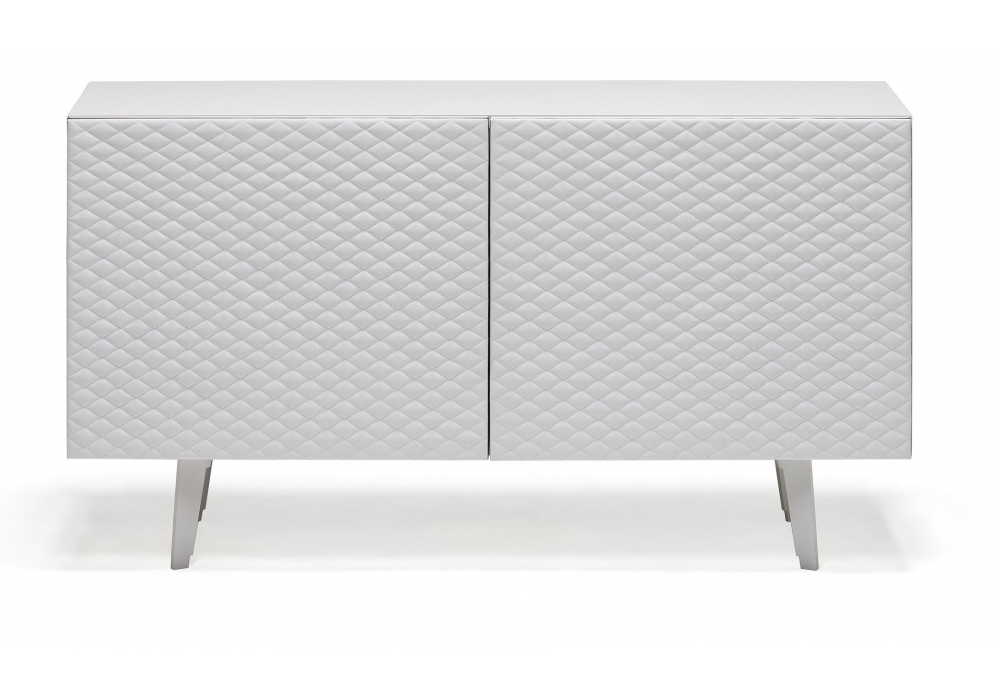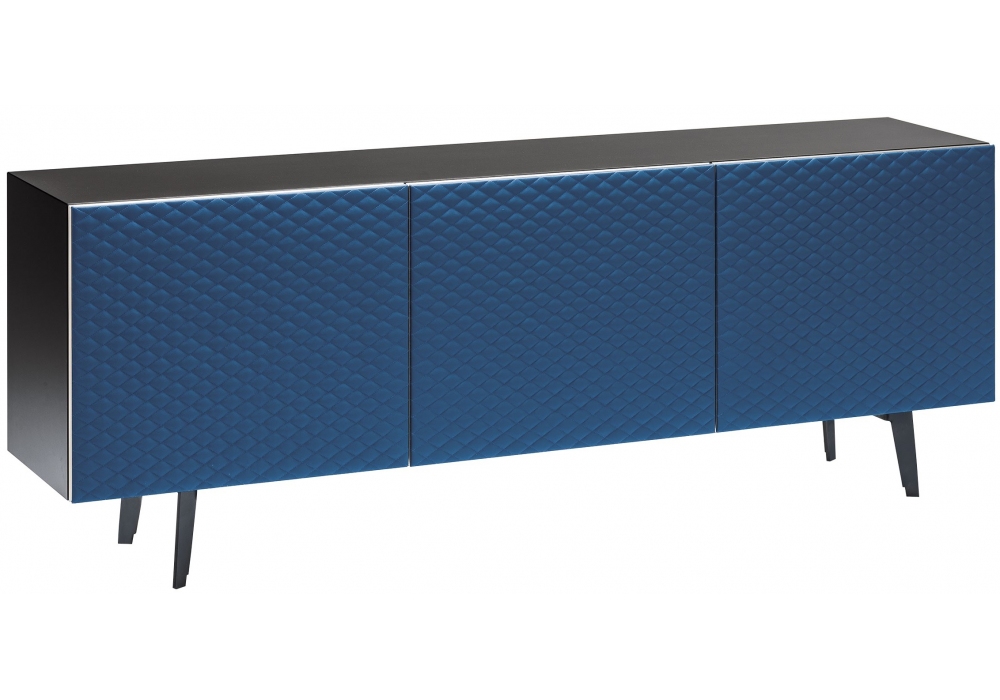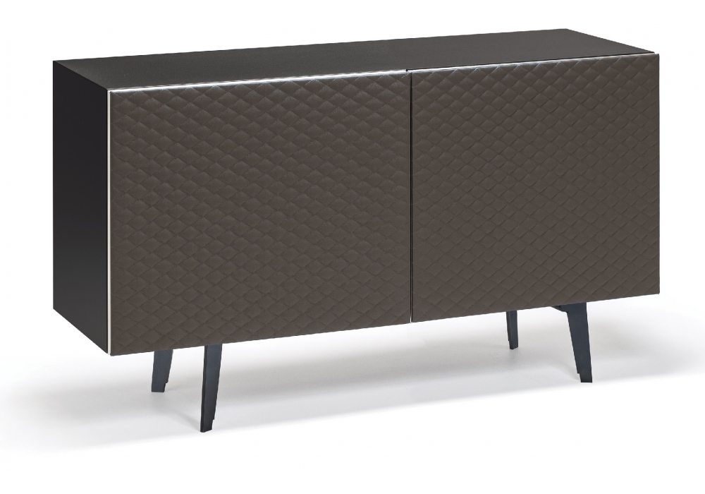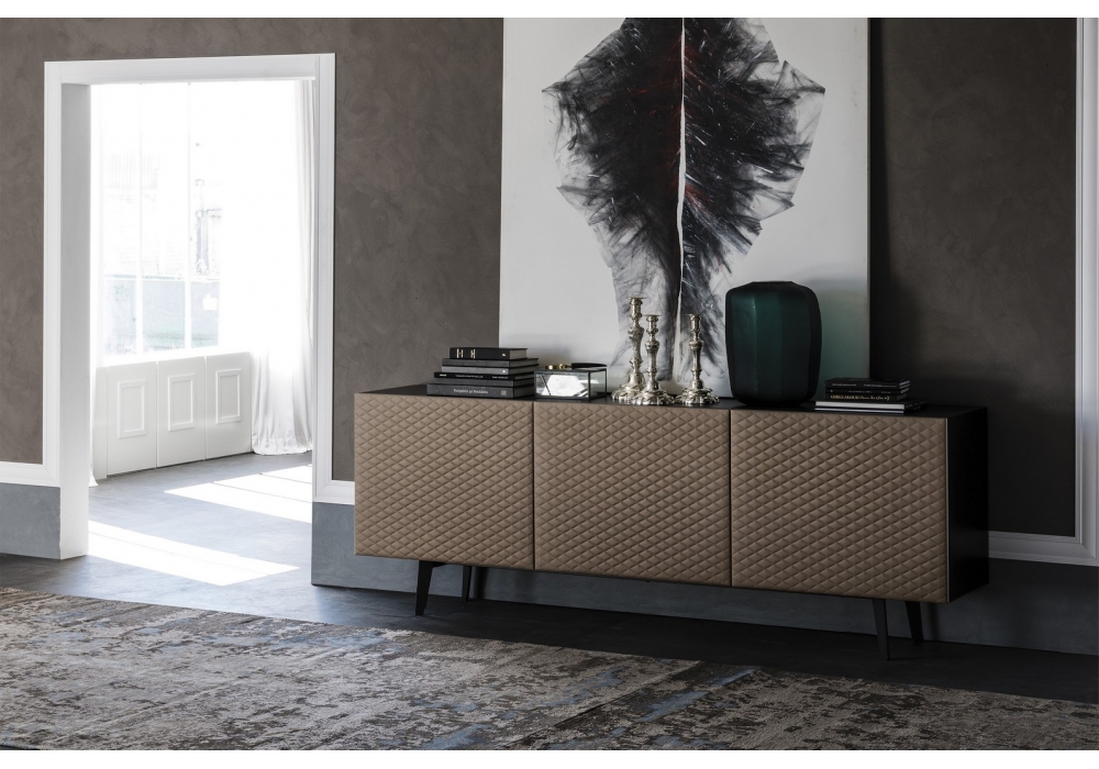 Absolut von Paolo Cattelan für Cattelan Italia entworfen, ist ein Sideboard aus lackierter Holzstruktur und Basis aus lackiertem Stahl in der gleichen Farbe wie die Struktur. Türen mit gestepptem Bezug aus Kunstleder oder Leder. Interne Regale aus transparentem Glas.Erhältlich mit Platte aus Glas extra hell geätzt weiß, graphitoder schwarz lackiert oder aus bronze verspiegeltem Glas.