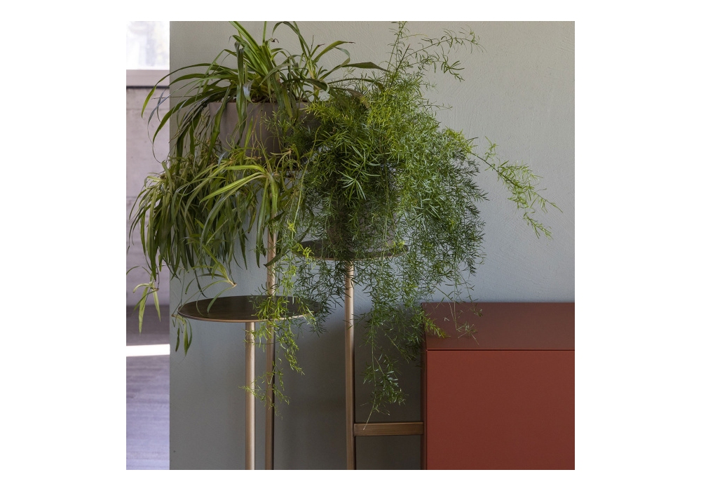 Ikebana von Uto Balmoral für Mogg entworfen, ist ein Kommode mit Struktur aus MDF und Metallrahmen, komplett mit 3 internen Glasregalen. Erhältlich in gaufrierter Lackierung oder plattiert in Ulme mit Kastanien-Finish. Der Metallrahmen umfasst 3 Regale mit einem Durchmesser von 32, 25, 28 cm und ist in brünierter lackierter oder patinierter Bronze erhältlich.