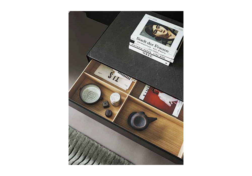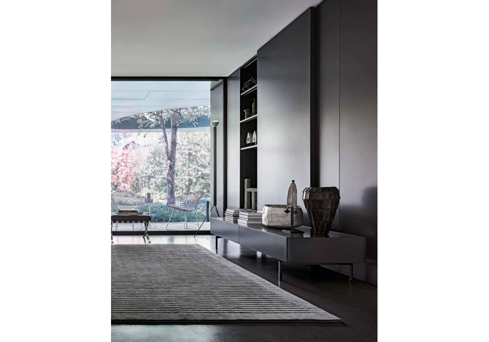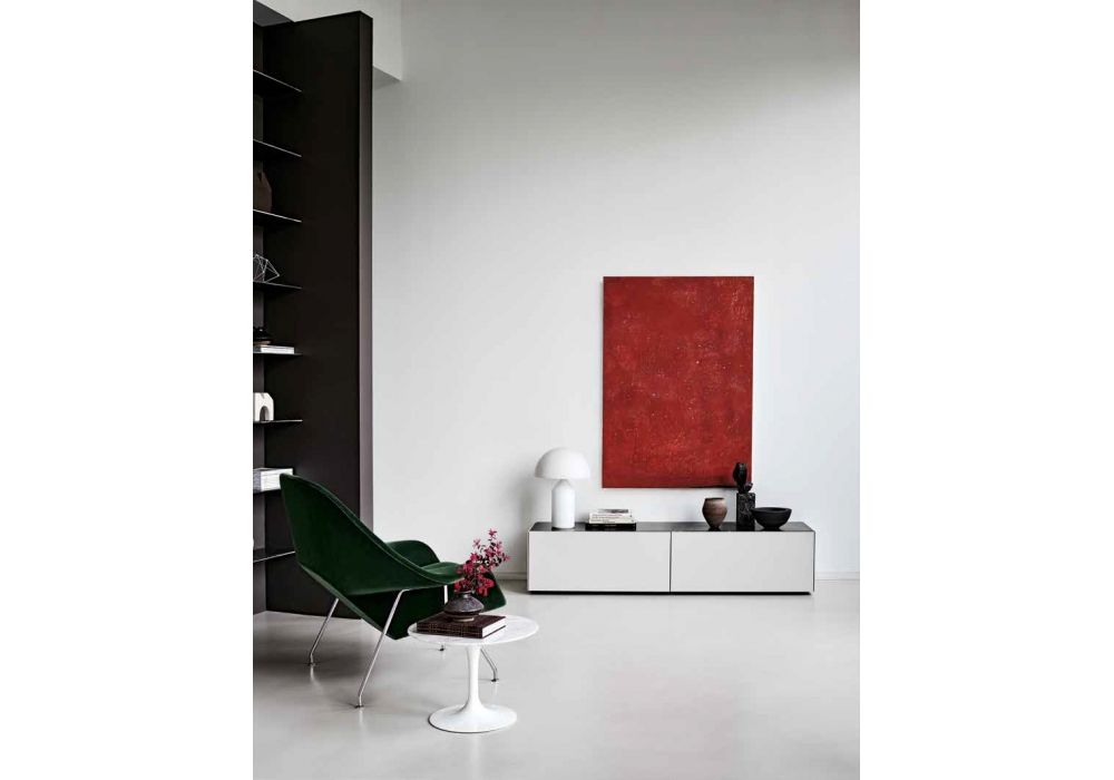 Matic von Piero Lissoni für Knoll entworfen ist ein Sideboard mit Marmorplatte in satiniertem oder glänzendem Polyester-Finish. Innere Struktur aus grauer Melaminplatte und äußere Struktur aus Wabenblech, lackiert in verschiedenen Ausführungen. Schubladen mit langsamer und gedämpfter Schließbewegung.