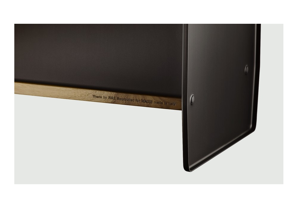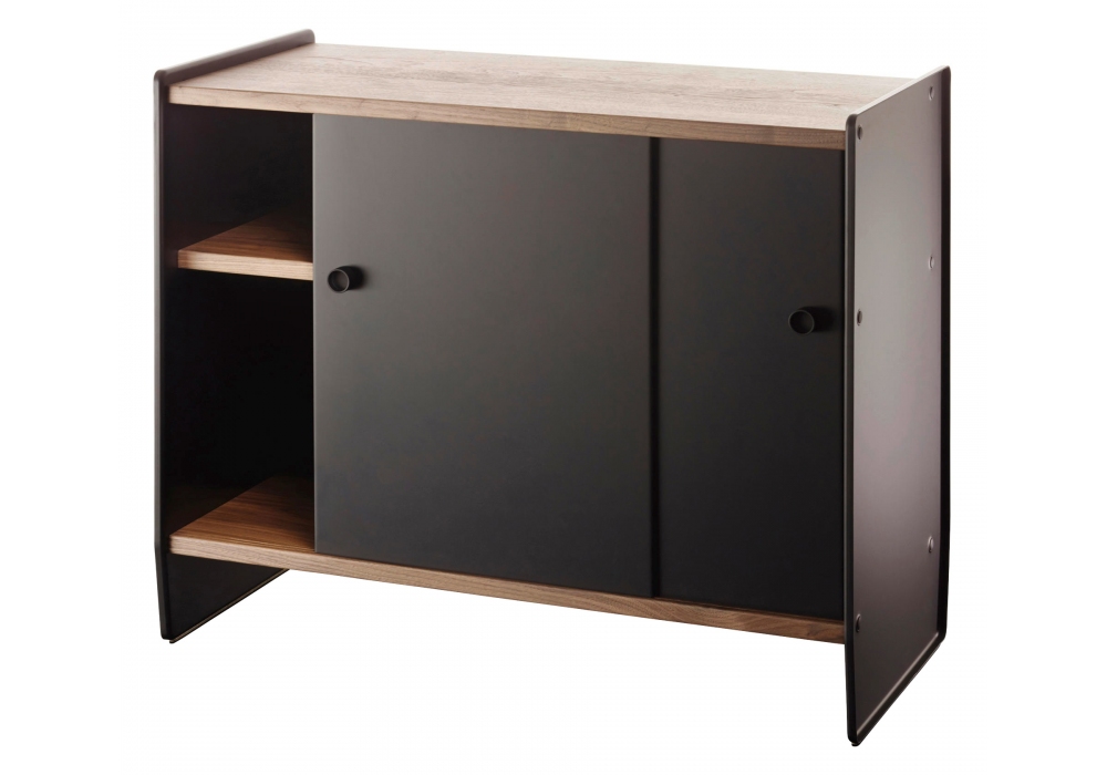 Theca von Ronan & Erwan Bouroullec für Magis entworfen, ist eine Aufbewahrungseinheit mit Struktur (Seiten, Rückwand und Schiebetüren) aus lackiertem Aluminiumblech. Regale aus furniertem MDF. Erhältlich in verschiedenen Ausführungen und Größen.