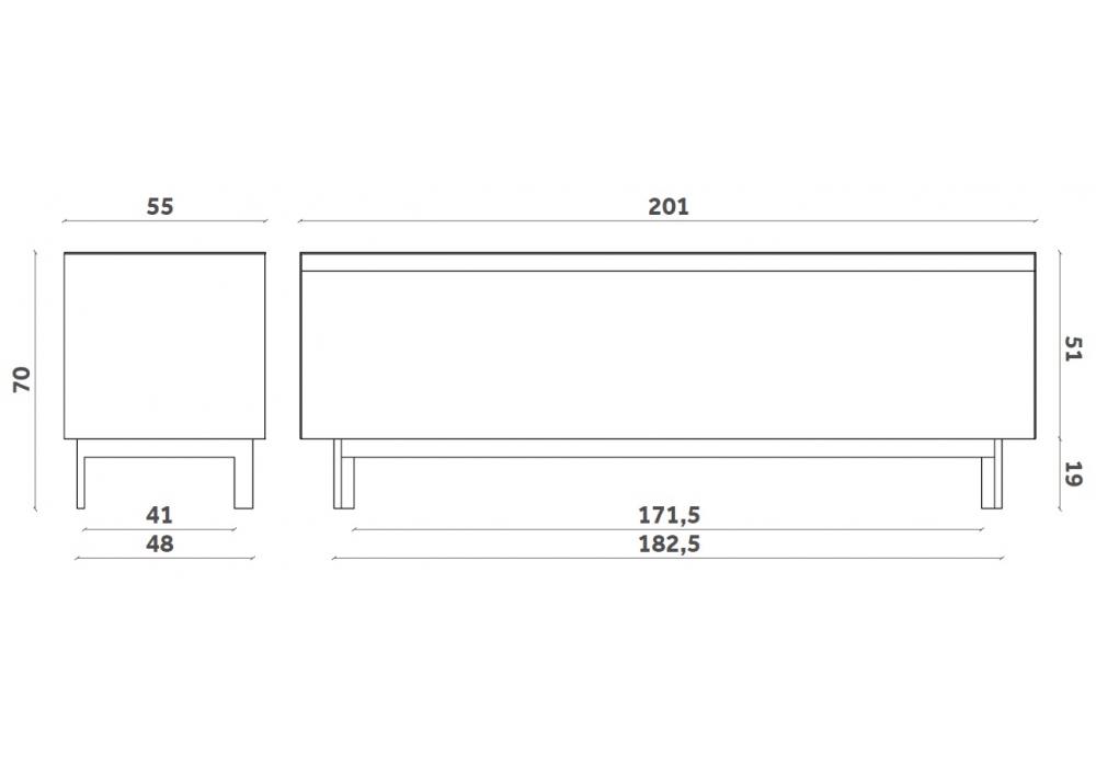 | Abmessungen | • 201 x 55 x H 70 cm |