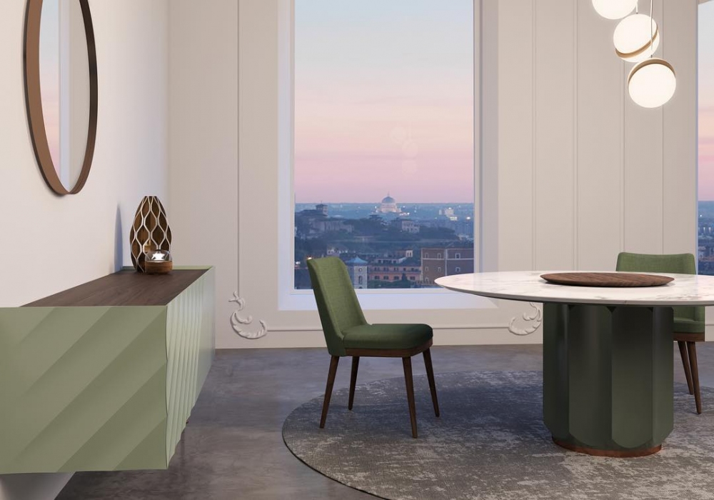 Wave von Christophe de Sousa für Gual Design entworfen, ist ein Sideboard für 4 oder 3 Personen mit internem Glasregal in jedem Modul. Matt lackierte blaugrüne Struktur, Walnussplatte und Edelstahlfüße mit kupferfarbenem Finish. Es ist möglich, die Schublade als Zubehör hinzuzufügen. Verfügbar in verschiedenen Abmessungen.