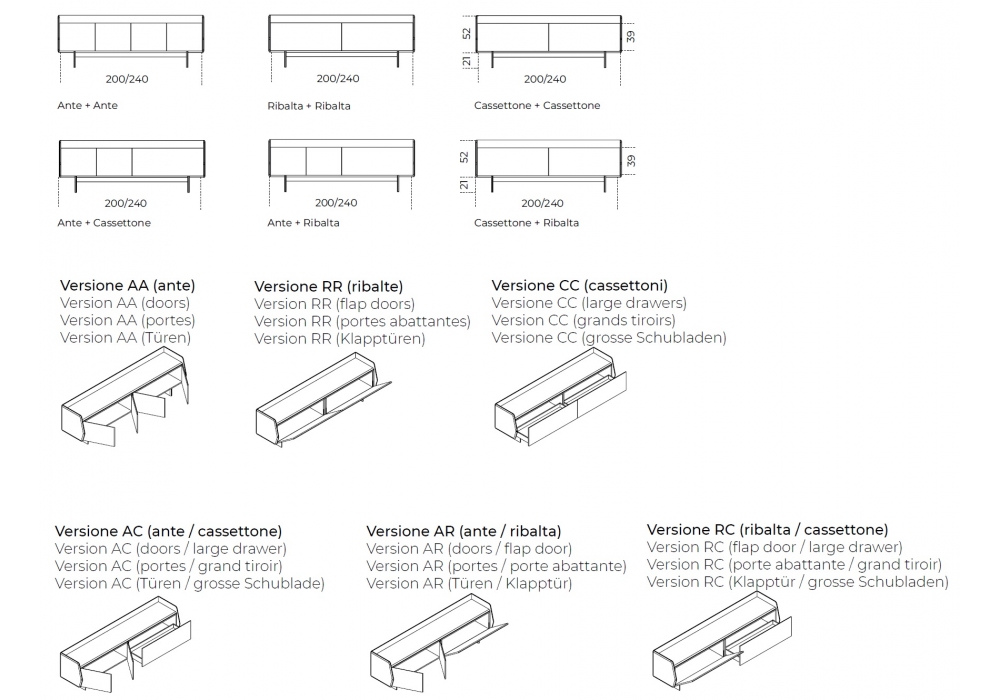 Gastone von Carlo Colombo für Gallotti&Radice entworfen, ist ein Sideboard aus glänzend lackiertem Holz in den Farben “Grigio Londra”, “Nero Giza”, “Bianco Camargue”, “Verde Provenza”, “Blu Pacifico”, “Bordeaux Etruria” oder “Rosa Jaipur”. Innenteile in der Farbe “grape must” (NCS S 5020-R10B). Obere Platte in der gleichen Ausführung wie das Sideboard. Auf Aufrage obere Platte aus Marmor Travertino Romano natur gebürstet (nicht resiniert) oder Ceppo di Gré® gebürstet. Auf Wunsch geformtes oberes Platte aus vorgespanntem Glas Extralight 8mm. Das Modul mit Türen kann mit einem Innenboden aus Glas Extralight und das Modul mit grosse Schubladen mit einer Innenschublade geliefert werden. Lieferbar in fixen Kompositionen.