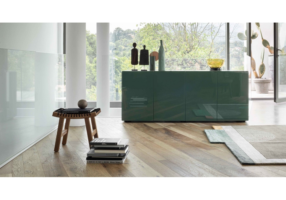 Florens von Gabriele und Oscar Buratti für Lema entworfen, ist ein Sideboard aus Holz mit Flügeltüren. Seiten und Platte, die in verschiedenen Ausführungen und Materialien personalisiert werden können, kann durch ein Holzregal mit offenen Fächern ergänzt werden, das durch Schubladen und Tabletts angereichert ist, die im Wesentlichen von der Tischlertradition inspiriert sind.