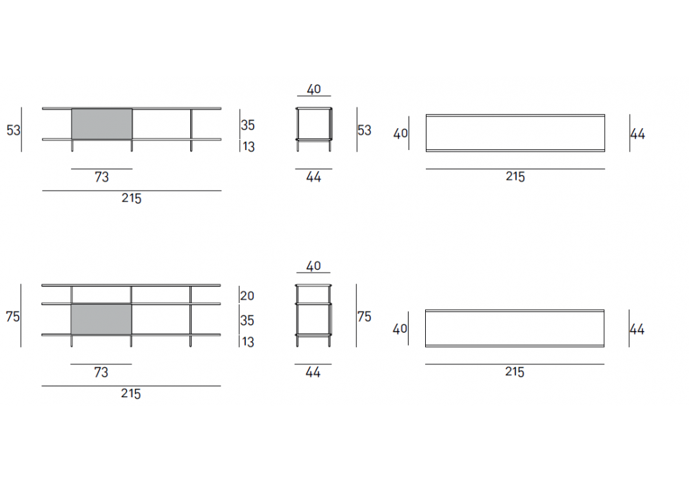 | Abmessungen | 215 x 44 x H 53 cm; 215 x 44 x H 75 cm. |